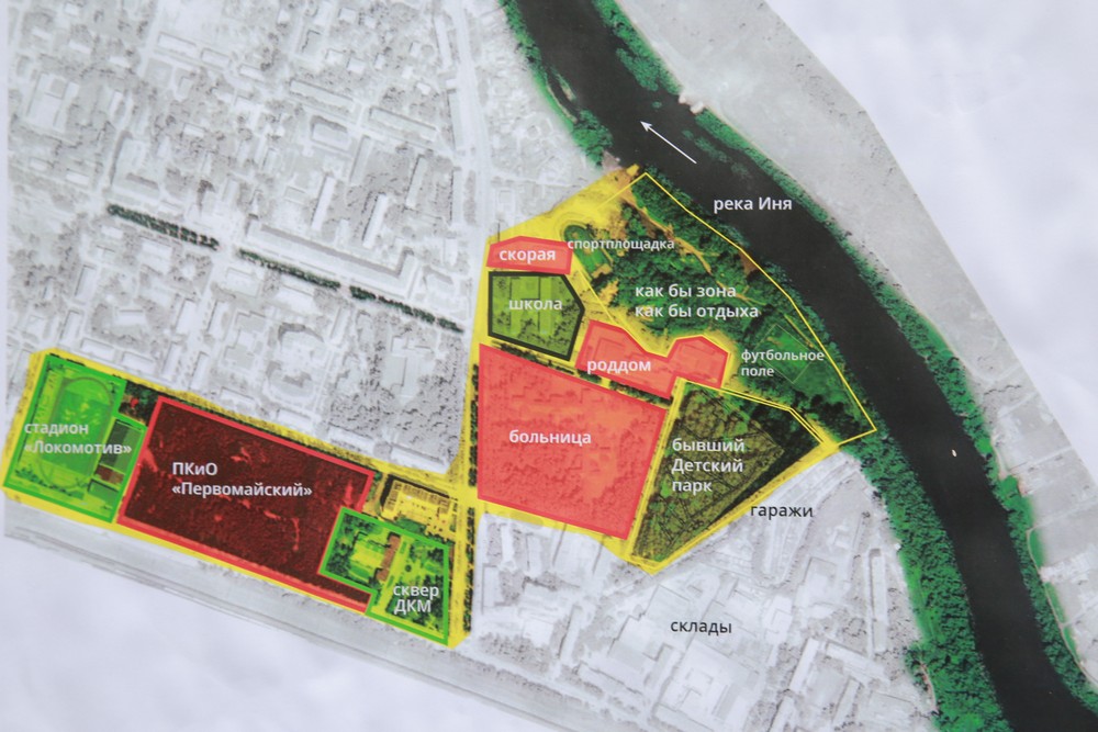 Развивать будут не только Детский парк, но и площадку у самого берега Ини. Это, по сути, небольшой стадион. Когда-то здесь даже тренировались воспитанники футбольной школы «Локомотив», потом площадка оказалась практически заброшенной. Но в этом году, когда большинство стадионов и спортивных объектов оказались закрыты, первомайцы вновь обратили на неё свой взор.