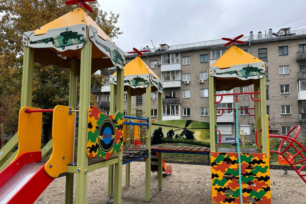 Детскую площадку в стиле «милитари» открыли на Геодезической