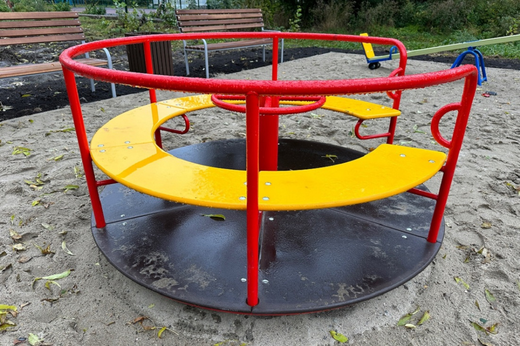 Детский игровой комплекс, карусель и качели установили во дворе дома №23 на улице Геодезической. Жители сами выбирали дизайн площадки и тип покрытия.