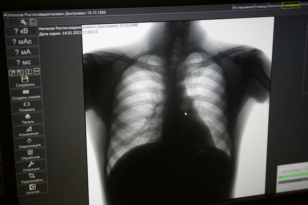 «Это цифровой маммограф: нет плёночек — снимок на экране. Отправляем сразу докторам. Это быстро, и не нужно проявлять плёнки. Больший поток населения можем пропустить», — объясняет рентген-лаборант Елена Морева.