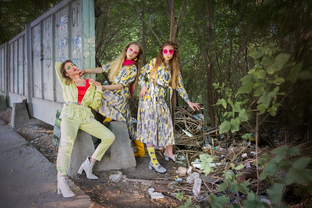 «Цель съёмки дизайнерской одежды на мусорке — привлечь внимание к экологическим проблемам и заодно показать, что серости хватает кругом. Поэтому хотя бы одежда должна поднимать нам настроение. Особенно яркая. Особенно осенью».