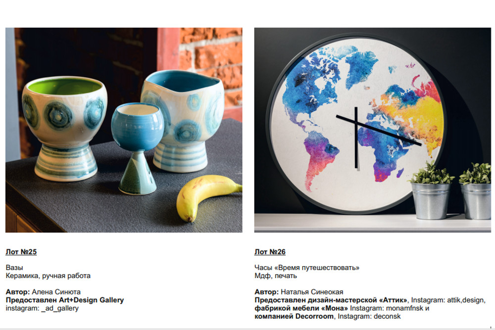 Художники и дизайнеры в 12-й раз собрали для торгов свои произведения. С молотка уйдут 42 лота — часы, картины, подсвечники, статуэтки, украшения, подушки, журнальные столики и мягкие игрушки в винтажном стиле. Все вырученные деньги передадут фонду «Защити жизнь» — на лечение и реабилитацию детей с онкологическими заболеваниями.