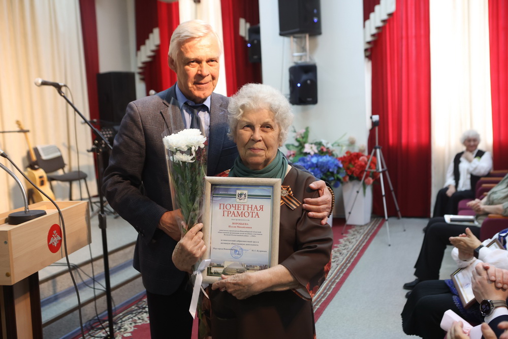 Концерт в честь 80-летия Победы устроили для пожилых людей, которые во время Великой Отечественной войны были детьми. Со сцены Дома офицеров прозвучали песни тех лет в исполнении вокально-инструментального ансамбля «Живой звук».