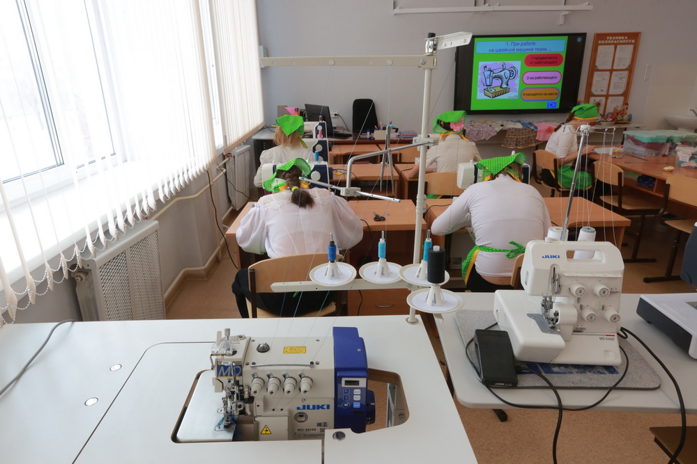 «Всё оборудование, на котором практикуются ученицы, настраивается с помощью компьютерных программ. Можно выбирать режим медленной работы, чтобы дети не пугались скорости швейной иголки и шума техники», — поясняет учитель трудового обучения Татьяна Аникеева.