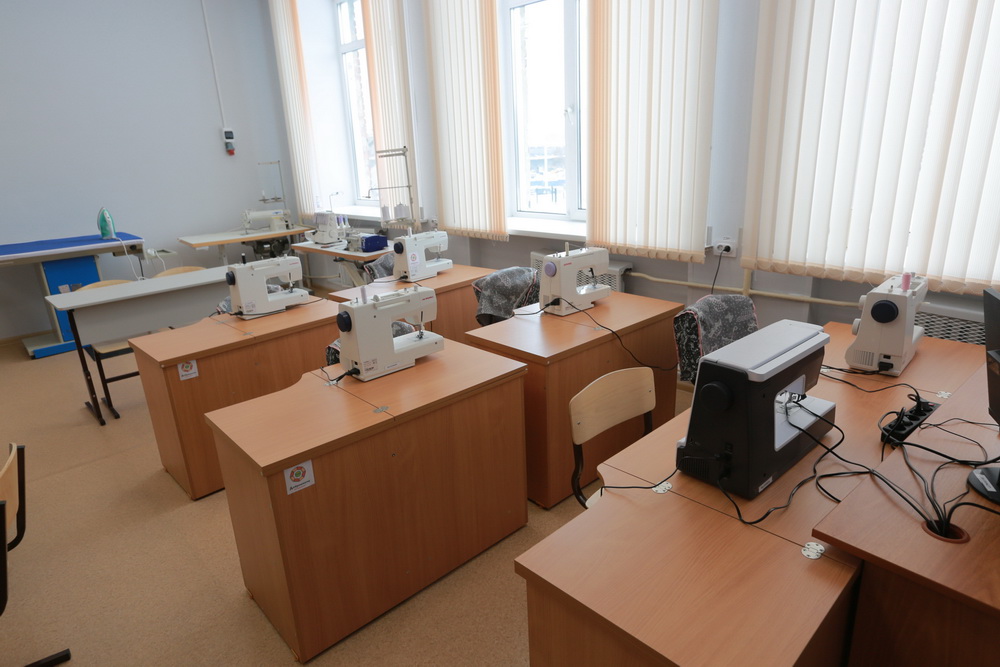 В швейной мастерской у девочек кипит работа. Кругом как в настоящем ателье: светящиеся столы для составления выкройки, зона работы с тканью, манекены, примерочная. И целый арсенал машинок, есть даже вышивальная.