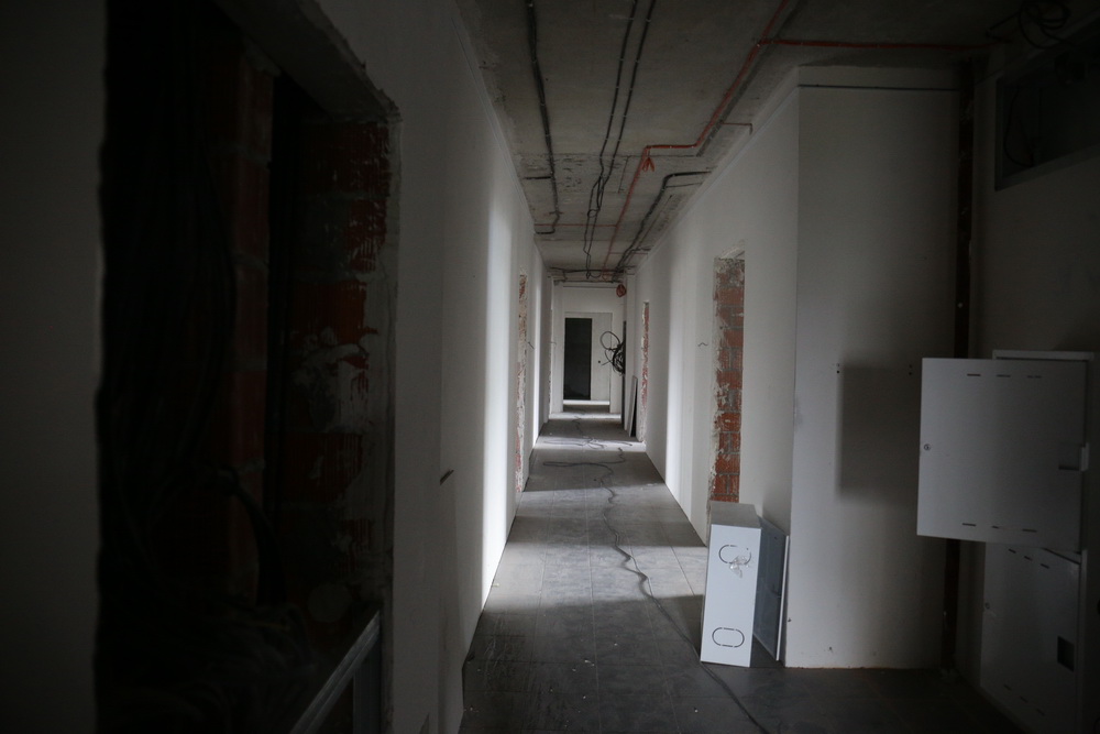 Закончить работы подрядчик планирует в этом году. Поможет мэрия: предоставит подрядчику субсидию почти в 40 млн рублей. Деньги пойдут на благоустройство территории и завершение технических работ в доме.