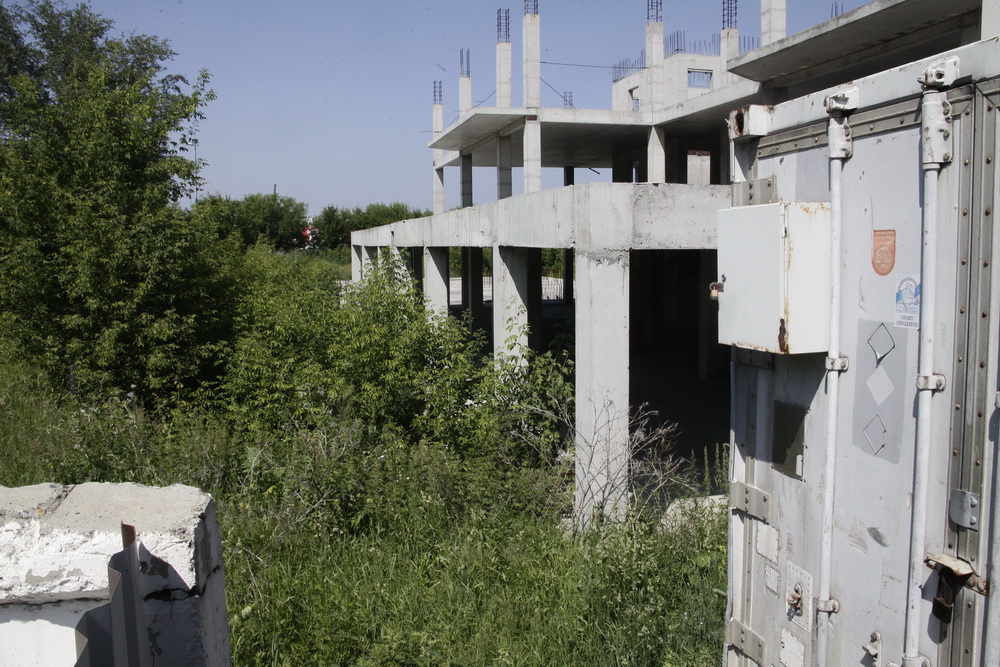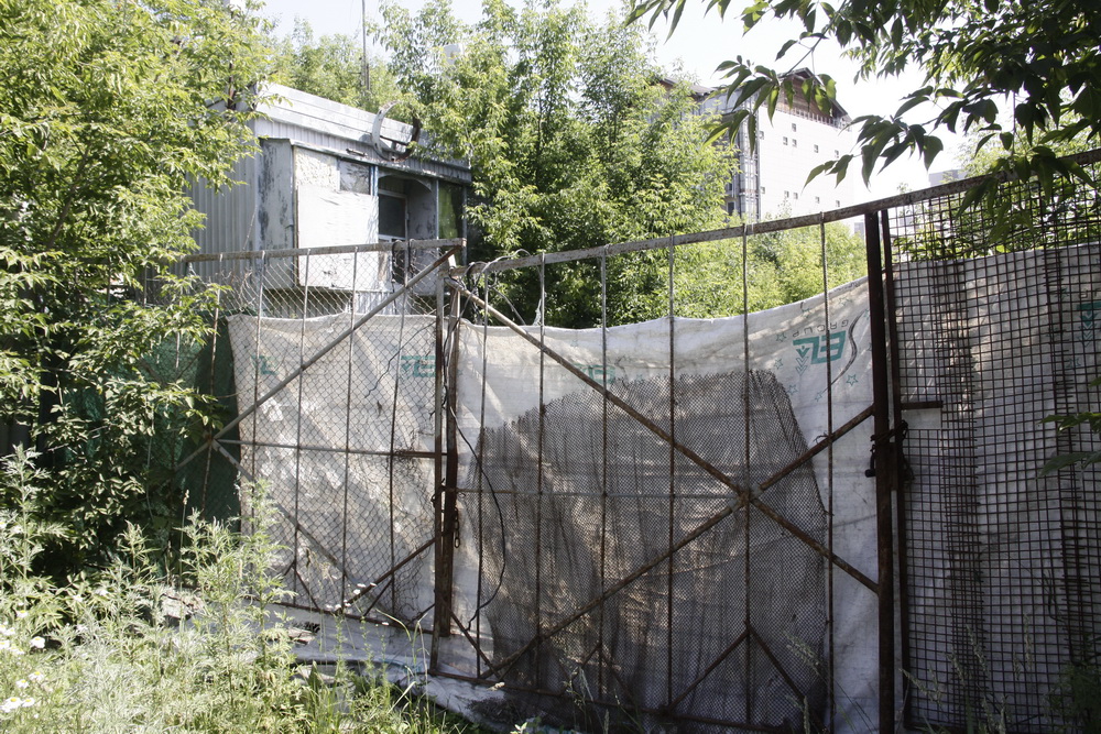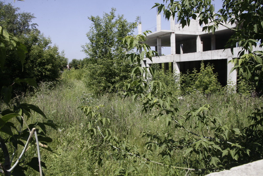 Судя по всему, когда-то здесь было довольно оживлённо — мощная техника двигалась на строительную площадку большого дома. Солидная ограда, более чем мощная караульная будка. То, что работы там не велись очень давно, видно невооружённым глазом: на площадке деревья успели вырасти.