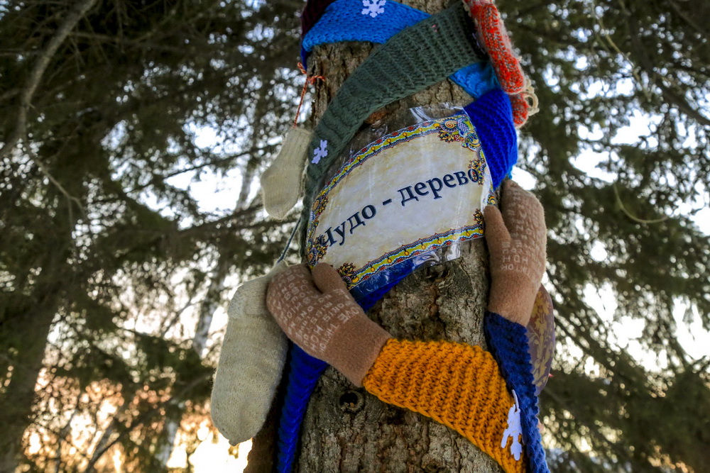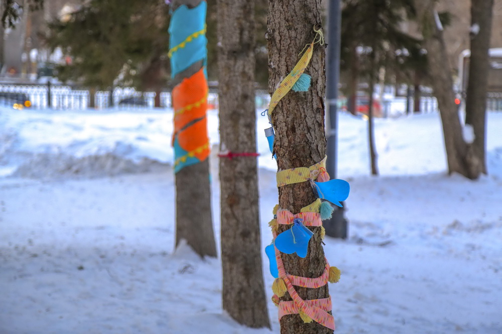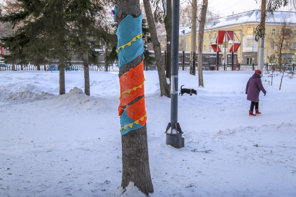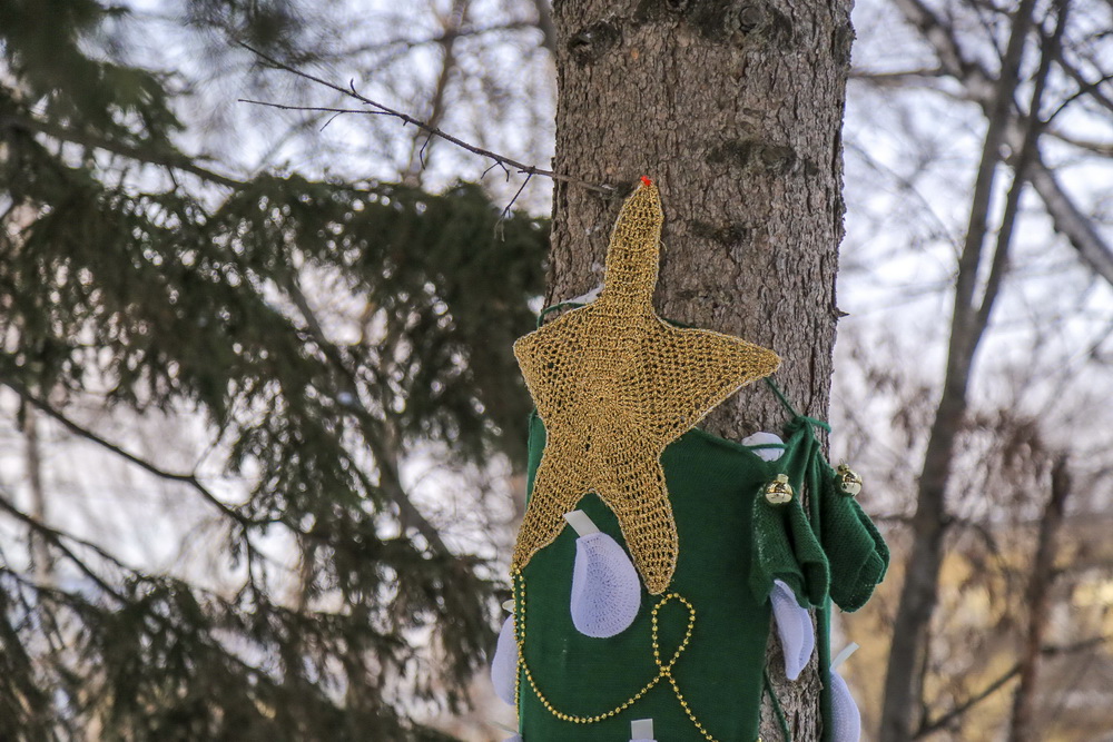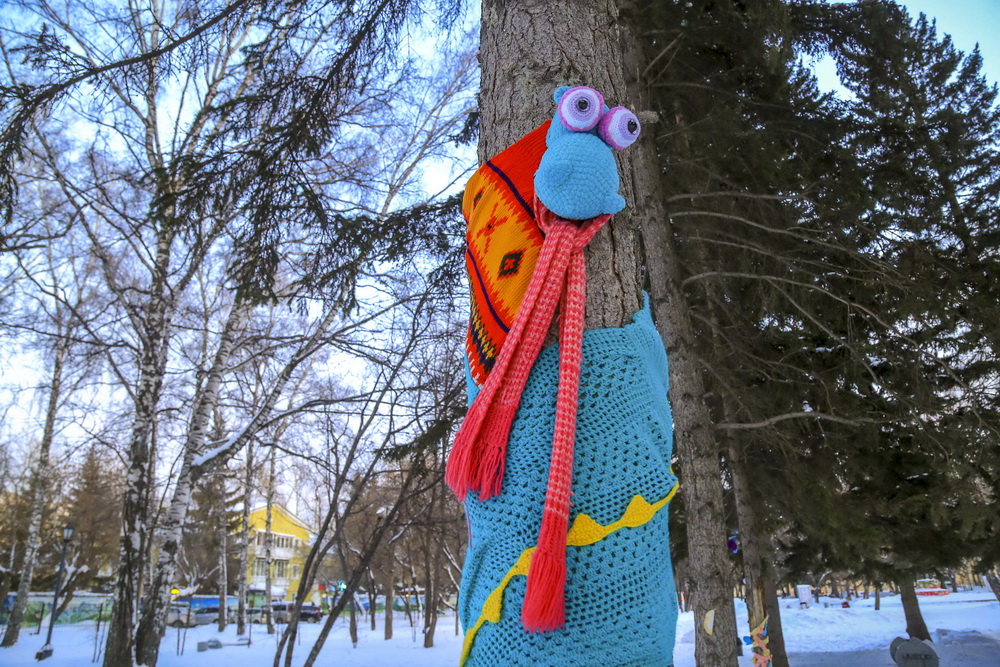 Вязаными украшениями деревьев можно полюбоваться до 12 января — в этот день организаторы подведут итоги конкурса и наградят авторов лучших работ.