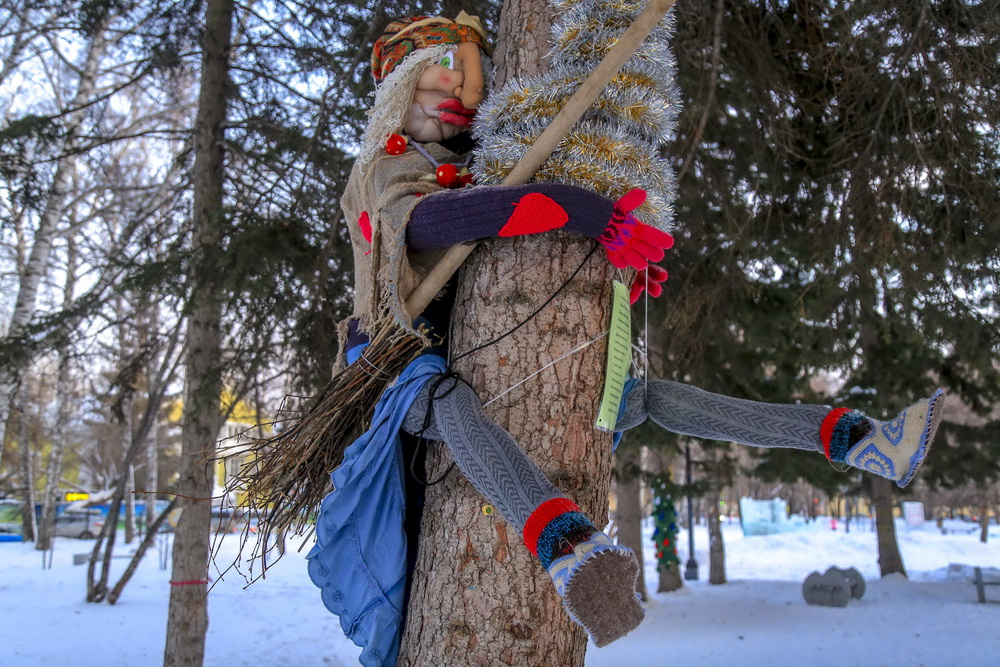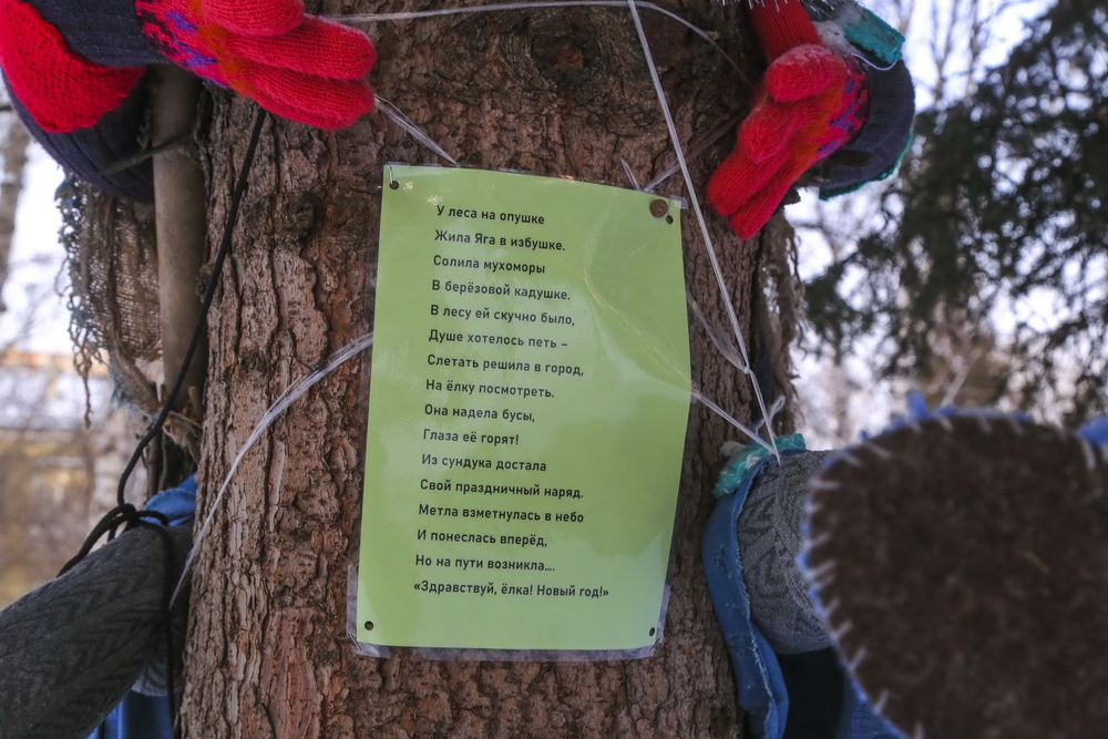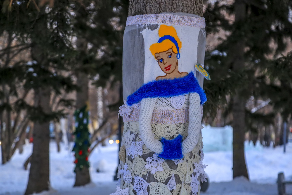 «В этот раз акция посвящена сказкам, поэтому на дерево прилетела Баба-яга, есть символы года, принцесса, снежная баба (так как Новосибирск — столица снежных баб), ёлочка-красавица.