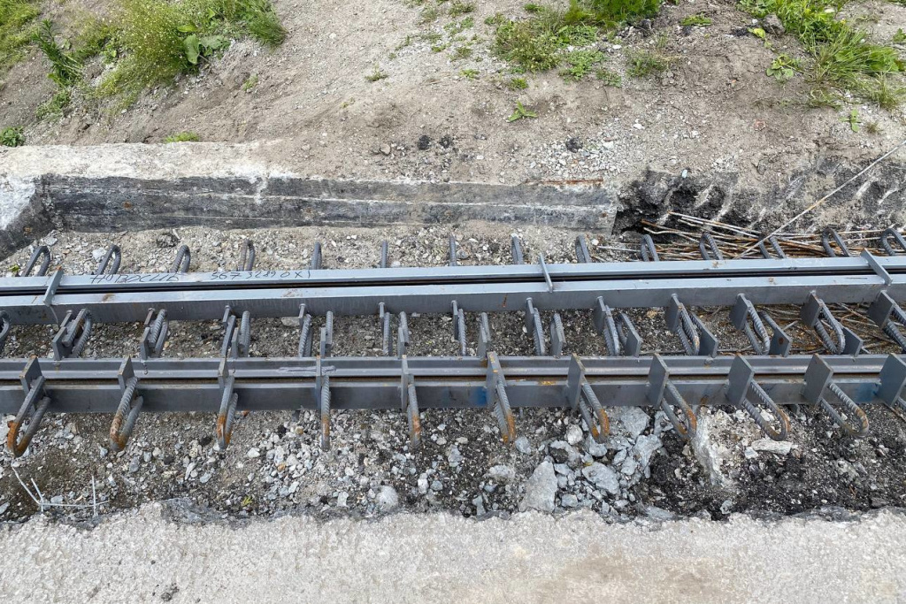 Завершён демонтаж дорожной одежды и тротуаров. Проводят армирование консолей, готовятся к бетонированию подферменных площадок на опорах.
