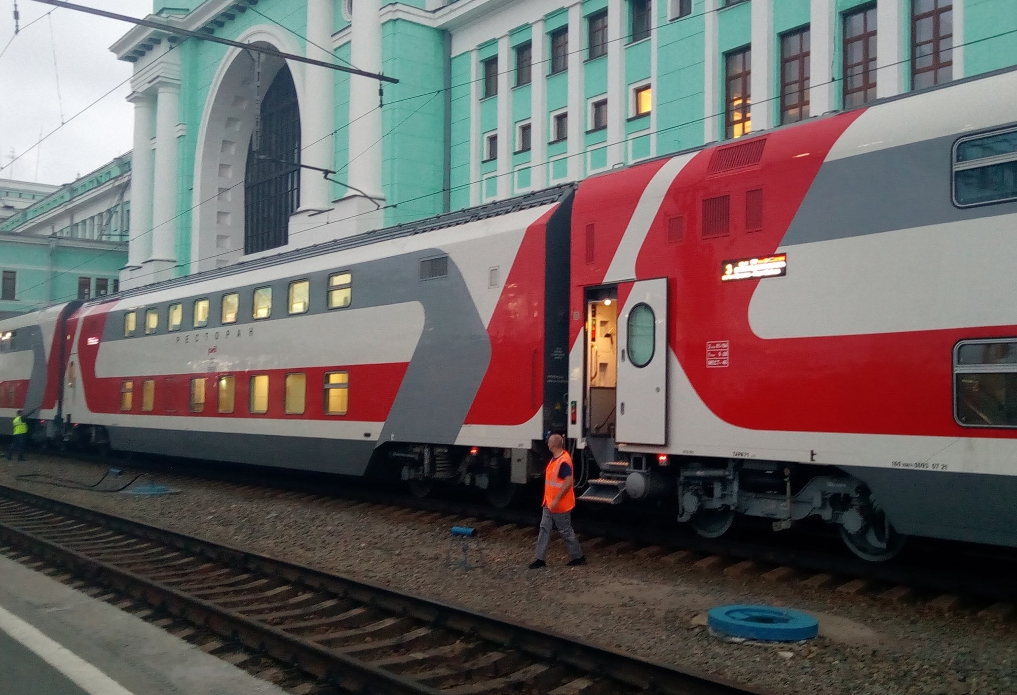 Около шести часов утра 27 июля на первый путь вокзала Новосибирск-Главный прибыл двухэтажный туристический поезд «Байкальская сказка». Он следует по маршруту Москва – порт Байкал. Билеты стоят от 123 000 рублей. Нам удалось сфотографировать поезд, сделавший в нашем городе 15-минутную техническую остановку. Как выглядит первая двухэтажная «Байкальская сказка» — смотрите в фоторепортаже «Новосибирских новостей».