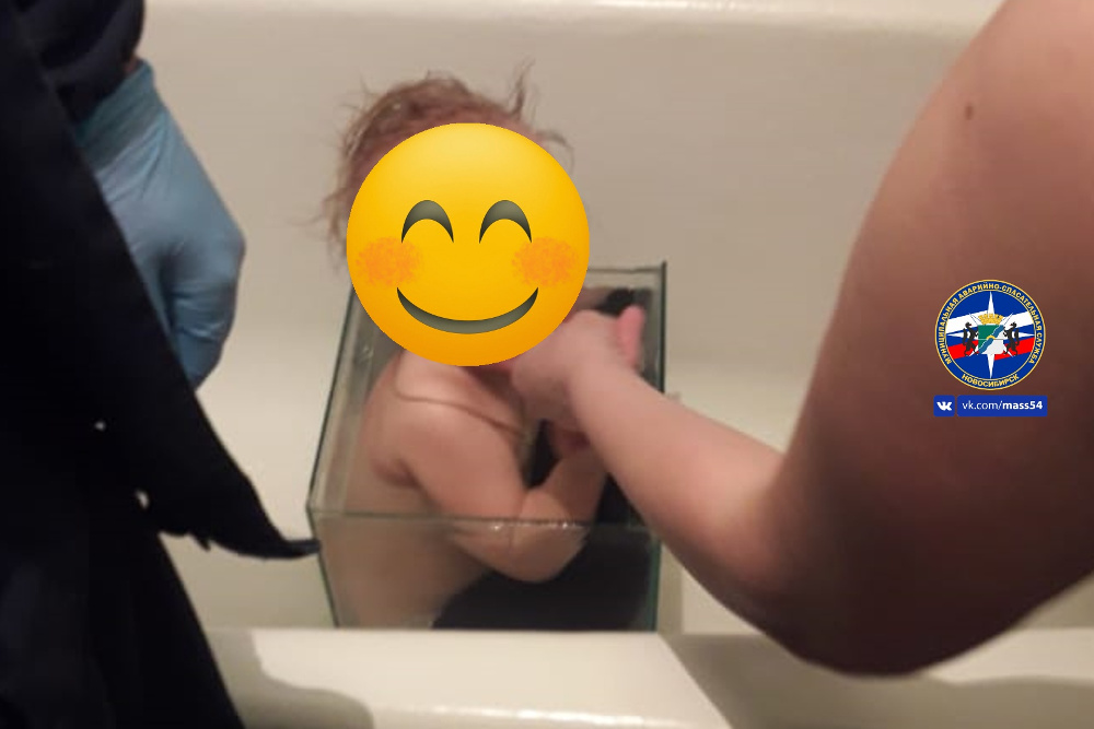 Двухлетняя девочка застряла в аквариуме для улиток в Новосибирске Фото: vk.com/mass54