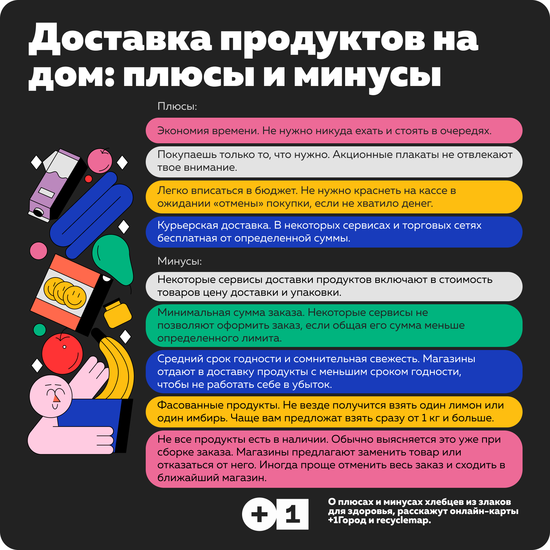 За последний год доставка продуктов на дом превратилась в популярный сервис. Но, как у любой другой услуги, у неё есть не только плюсы, но и минусы. Взвесить все «за» и «против» этого тренда предлагают эксперты федерального проекта «+1Город».