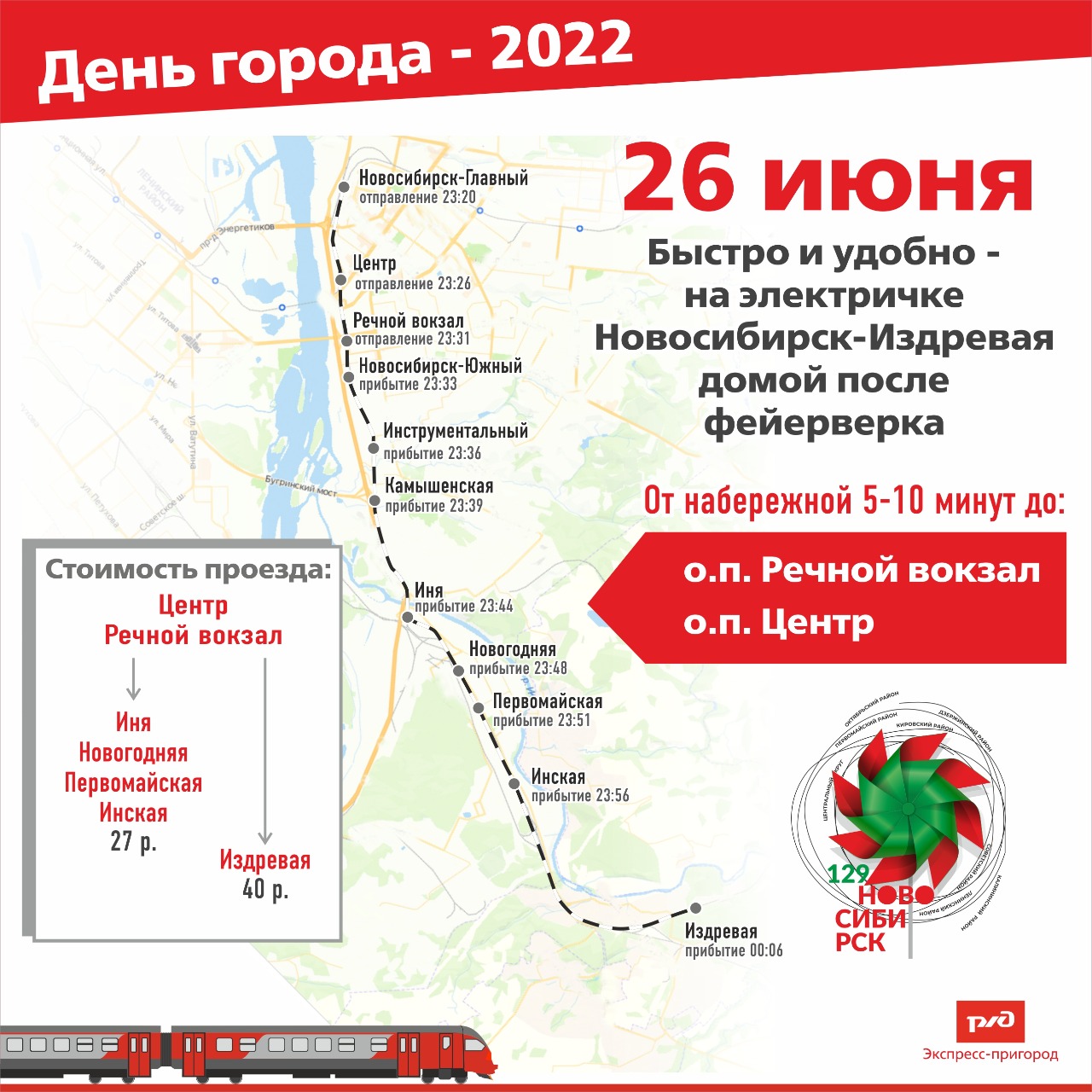 Электрички развезут новосибирцев после салюта в День города