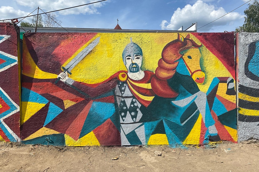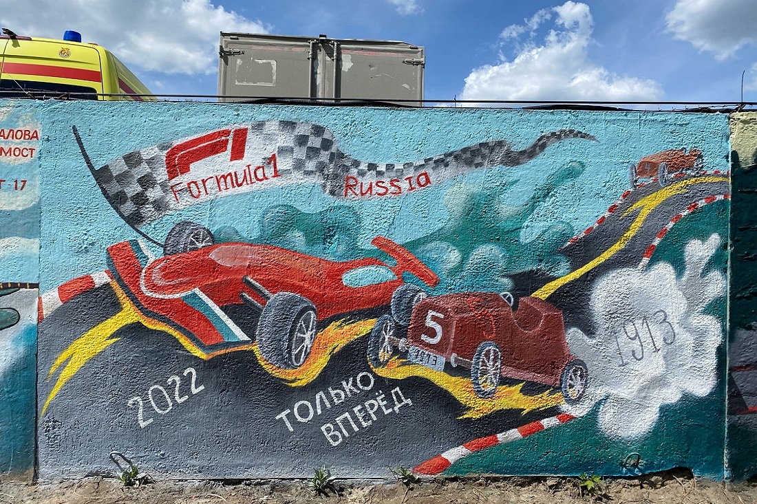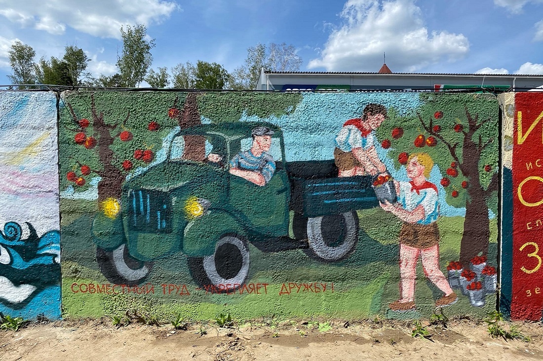 Всего на стенах возле музея ретротехники «Галерея времени» появилось 13 работ, созданных командами молодых художников в рамках конкурса-фестиваля «Время назад».