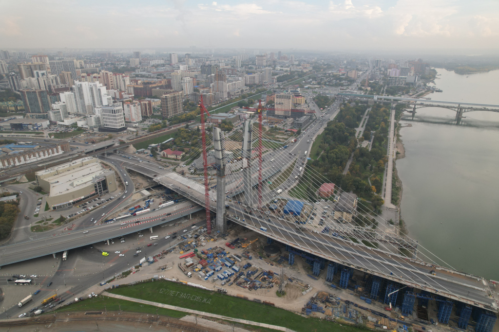 В Новосибирске промышленные альпинисты красят в жемчужно-белый цвет 114-метровый пилон строящегося моста через реку Обь. Всего им нужно затонировать 10 000 кв. метров. На это уйдёт девять тонн краски. Группа «ВИС» — концессионер строительства моста — опубликовала на своих страницах в соцсетях 1,5-минутный ролик, снятый с квадрокоптера. Видео показывает, как идёт покраска.