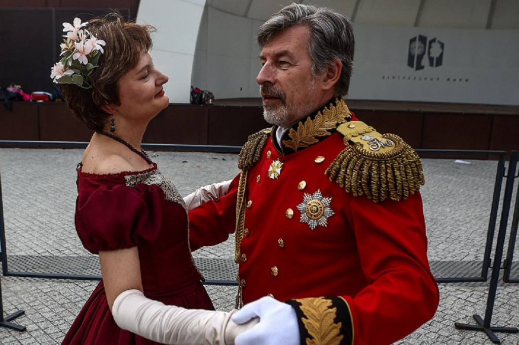 Костюмированный бал устроили в Центральном парке преподаватели и воспитанники школы светского танца «Отражение».