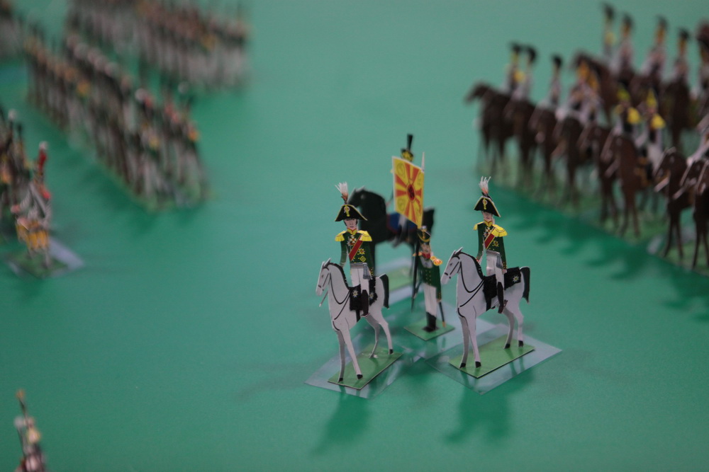 В историческом парке «Россия — моя история» показывают военно-тактический макет Бородинского сражения в масштабе 1:32. Тут всё, как было на самом деле. Одна фигурка на макете символизирует 100 реальных участников битвы. Это соответствует 138 000 французских войск и 128 000 русских войск. Каждый солдатик выполнен из бумаги и картона в масштабе 1:32 с точностью до мелочей. Если как следует присмотреться, то на солдатиках можно увидеть меховые шапки, у офицеров есть шпаги и сабли, у гусар — перья в головных уборах. На создание русского и французского войск у новосибирского архитектора Алексея Журавкова ушло полгода.