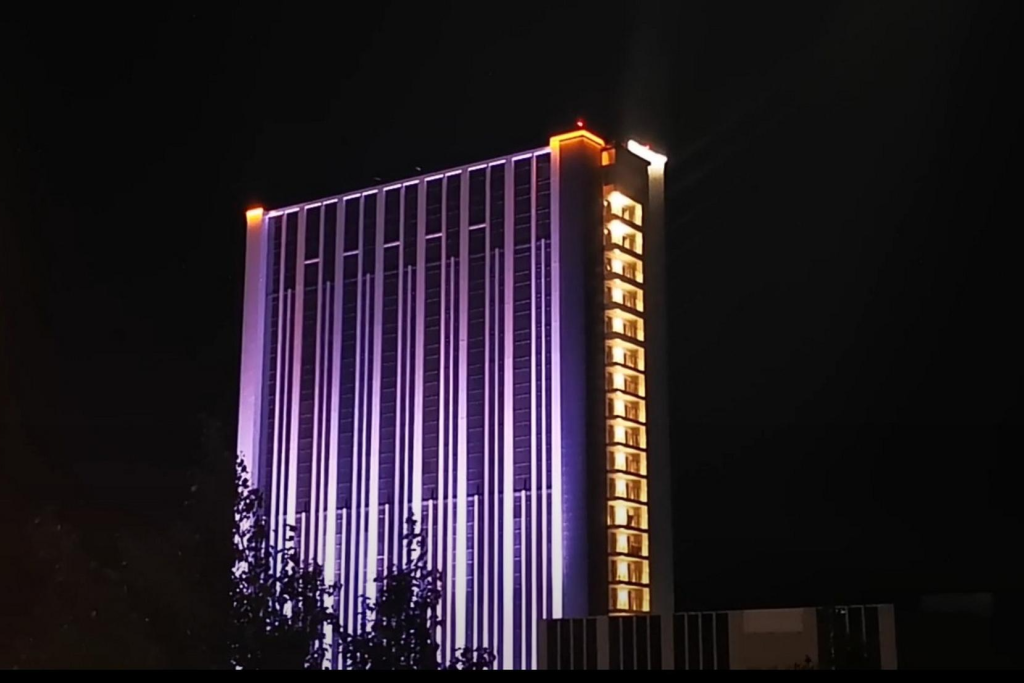 Эффектную ночную подсветку включили на строящейся гостинице «Турист»