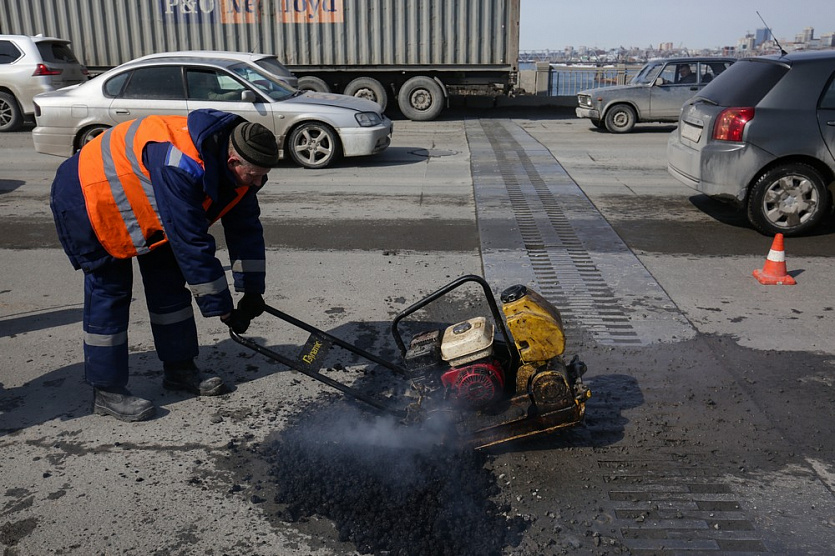 Весенний ремонт дорог: холодный полуфабрикат для Октябрьского моста