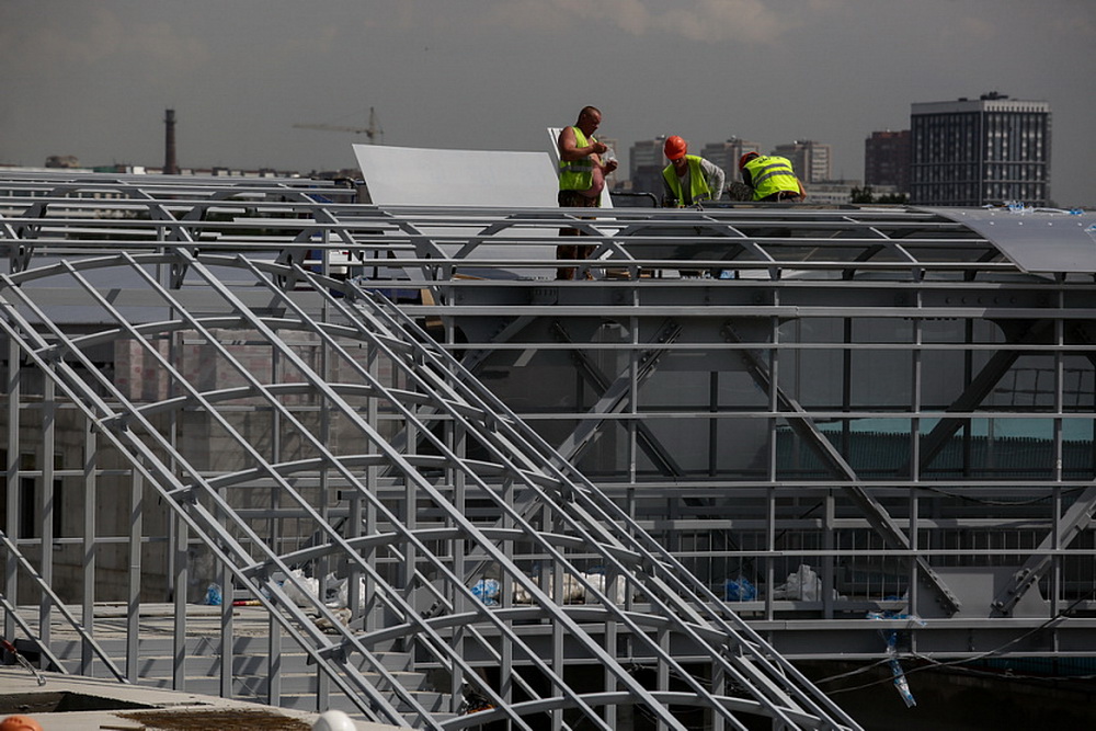 На переходе к станции «Спортивная» начали монтаж крыши и стен из стекла