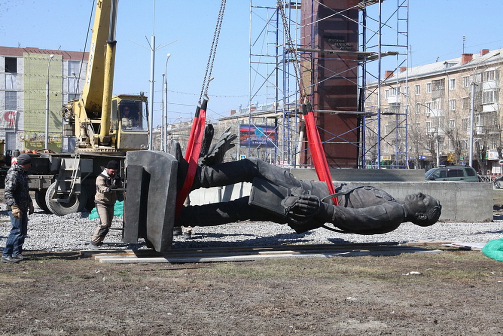 В среду, 13 апреля, шестиметровую скульптуру героя Великой Отечественной войны, маршала авиации Александра Покрышкина с помощью автокрана водрузили на новое место — в центр транспортного кольца на площади Маркса. Как это было — смотрите в нашем материале.