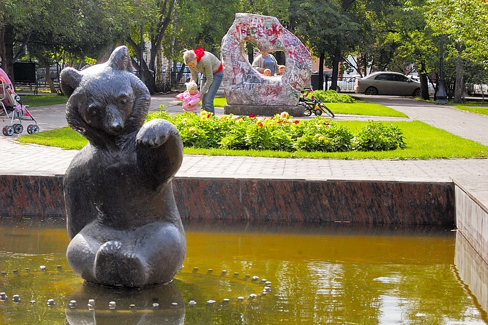 Ну а героем этой недели становится медвежонок из Первомайского сквера. Хоть это и скульптура, но не менее любимая горожанами, чем медведи из зоопарка.