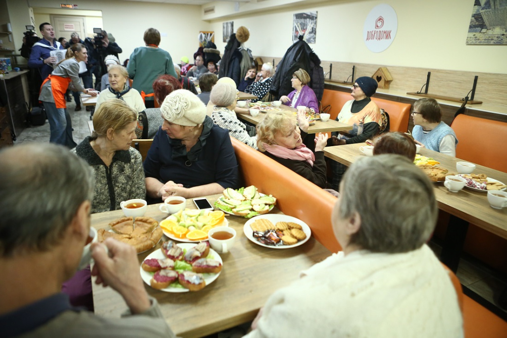 Новоселье на этой неделе отпраздновал «Добродомик». Это благотворительное кафе, где пенсионеров бесплатно кормят обедами. Теперь оно расположено на Красном проспекте, 64. Каждый день сюда смогут приходить более 500 бабушек и дедушек.