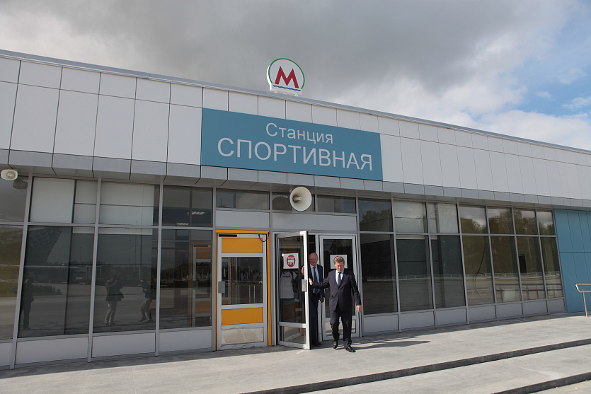Пятивагонный поезд с мэром Локтем прибыл на станцию метро «Спортивная»