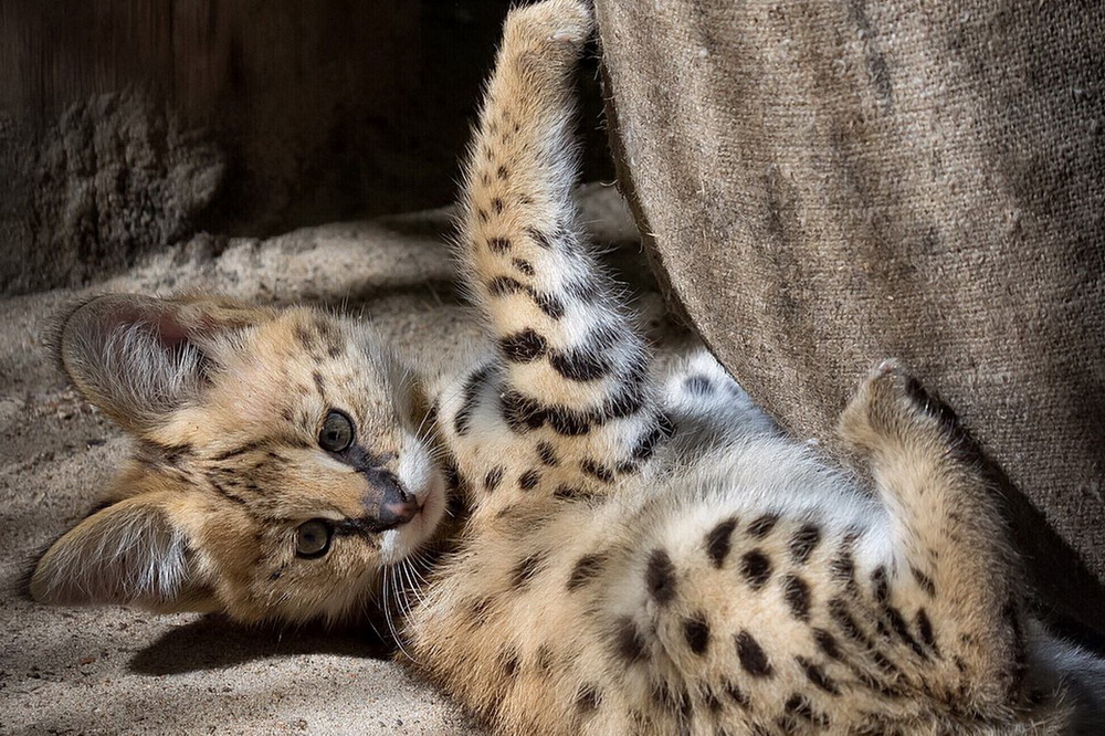 Малышам-сервалам в зоопарке дают на растерзание картонные коробки