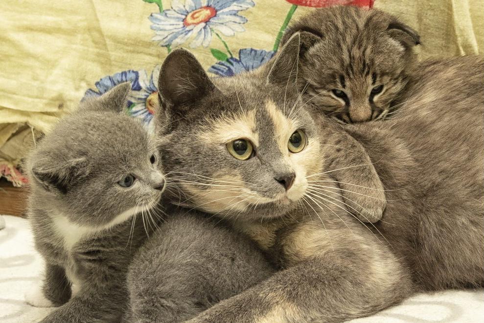 Домашняя кошка кормит дикого рысёнка — умилительные фото