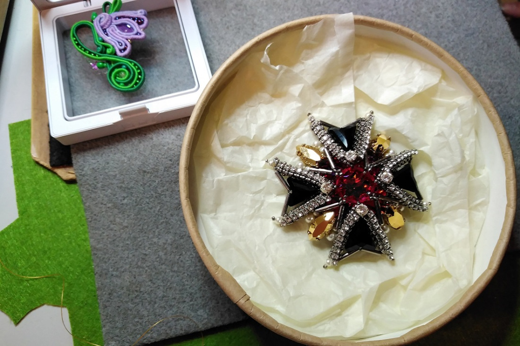 «Поскольку Женя у нас заслуженный пират, то для него я сделала „мальтийский“ крест из бисера и кристаллов», — рассказывает Ирина.
