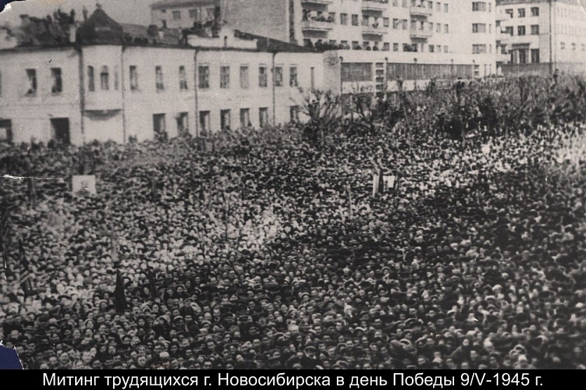 А в восемь часов утра об общегородском митинге объявили уже по радио. И сотни тысяч новосибирцев потянулись на площадь перед облисполкомом — бывшую Эйхе, ныне Свердлова, — «повинуясь велению сердца», как писала «Советская Сибирь». В номере от 10 мая 1945 года читаем: