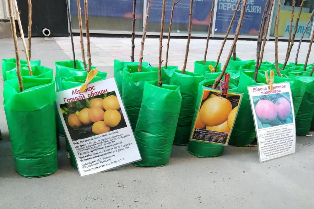 Сибирские абрикосы новинкой года не назовёшь, но фотографии с аппетитными плодами вполне способны вдохновить на подвиги даже бывалых садоводов. Стоят саженцы абрикосов от 800 до 1200 рублей. Продавцы напоминают всем покупателям, что одно абрикосовое дерево, скорее всего, плодоносить не будет. Сажать нужно несколько через каждые 1,5 метра. Это позволит растениям нормально опыляться.