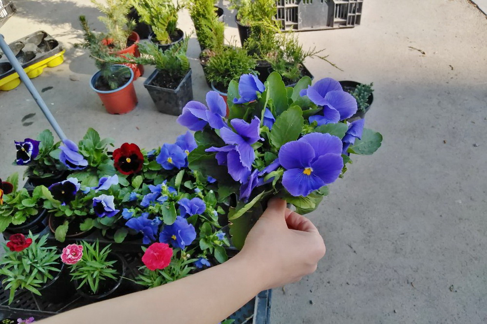 Также на базарчиках и в магазинах продают цветы-однолетники. Так, большой куст анютиных глазок с цветками размером с ладошку стоит 100 рублей, маленький — 80 рублей. Там же можно купить и рассаду капусты, помидоров, огурцов, перцев, баклажанов, тыкв и кабачков.
