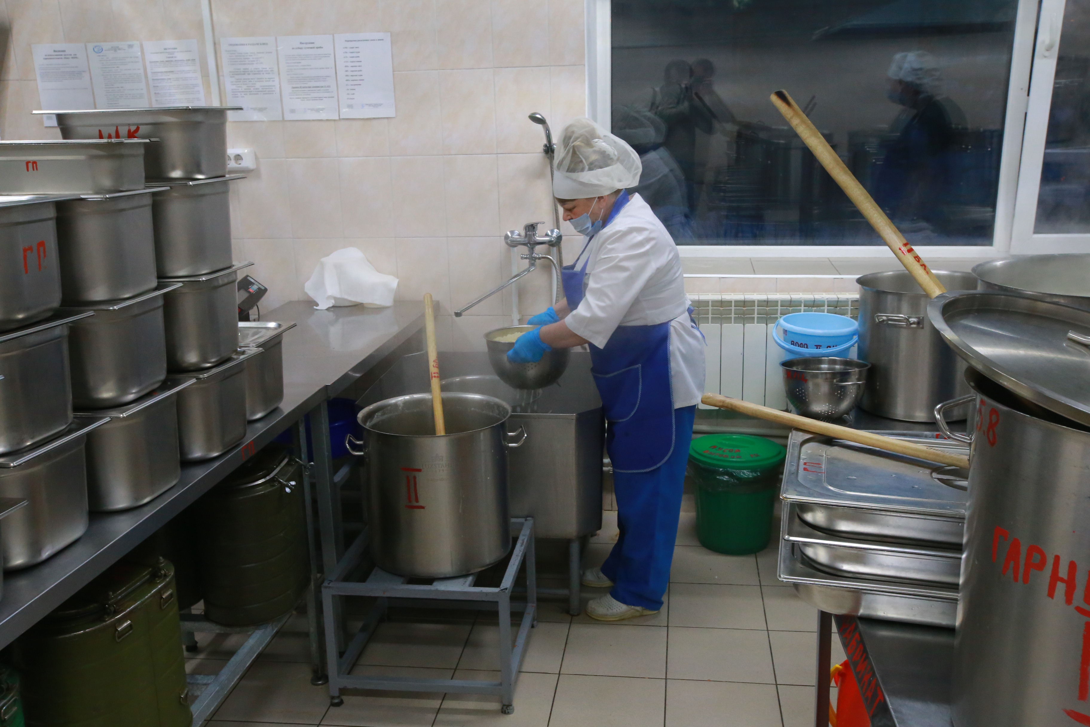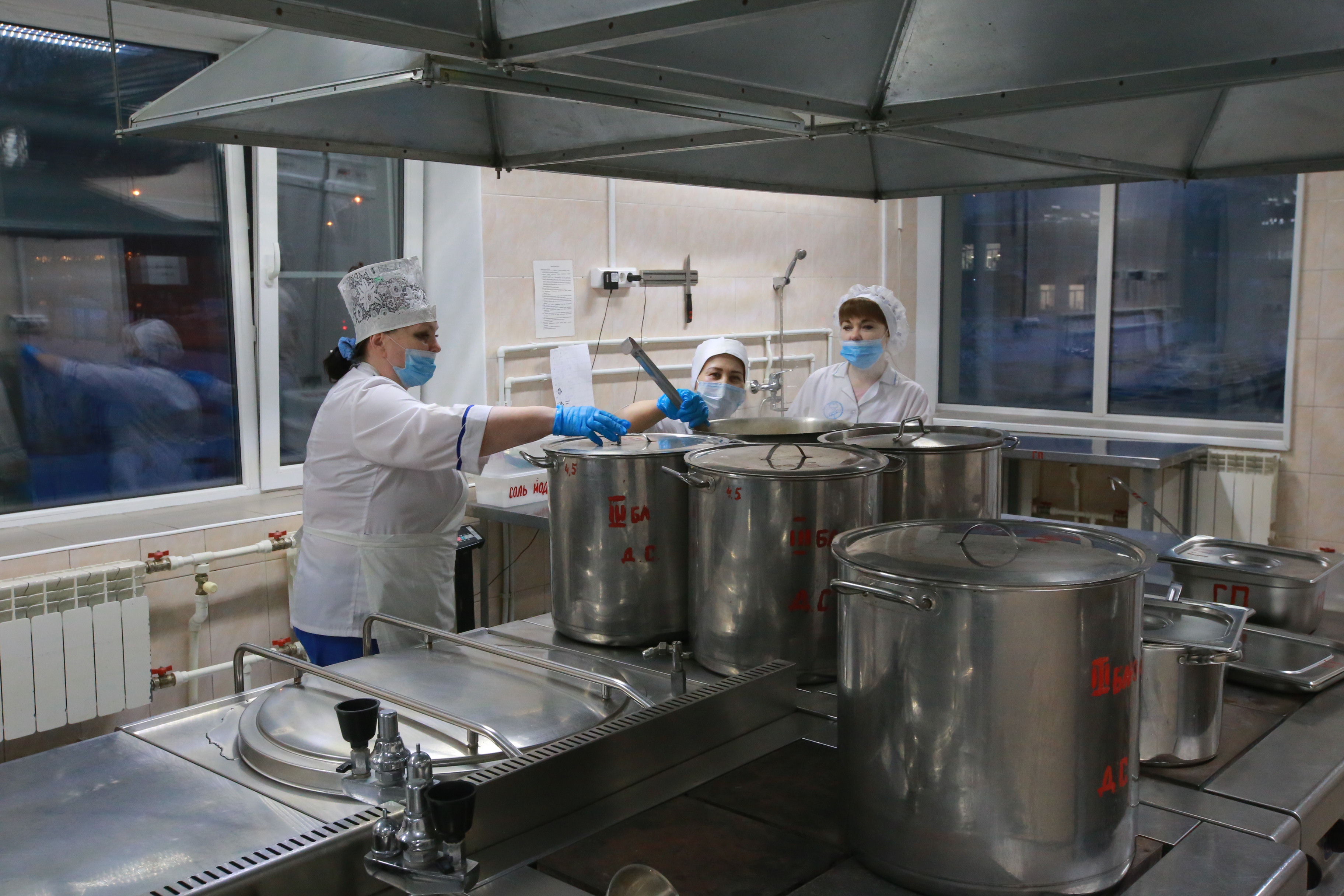 Смена на комбинате питания, которая варит обеды для буфетов-раздаточных, начинается в три часа ночи. Повара готовят по 5000-7000 порций, в зависимости ото дня. Срок реализации готовых обедов составляет всего два часа. Еду увозят в школы в термоконтейнерах. За время доставки температура блюда опускается всего на два градуса.