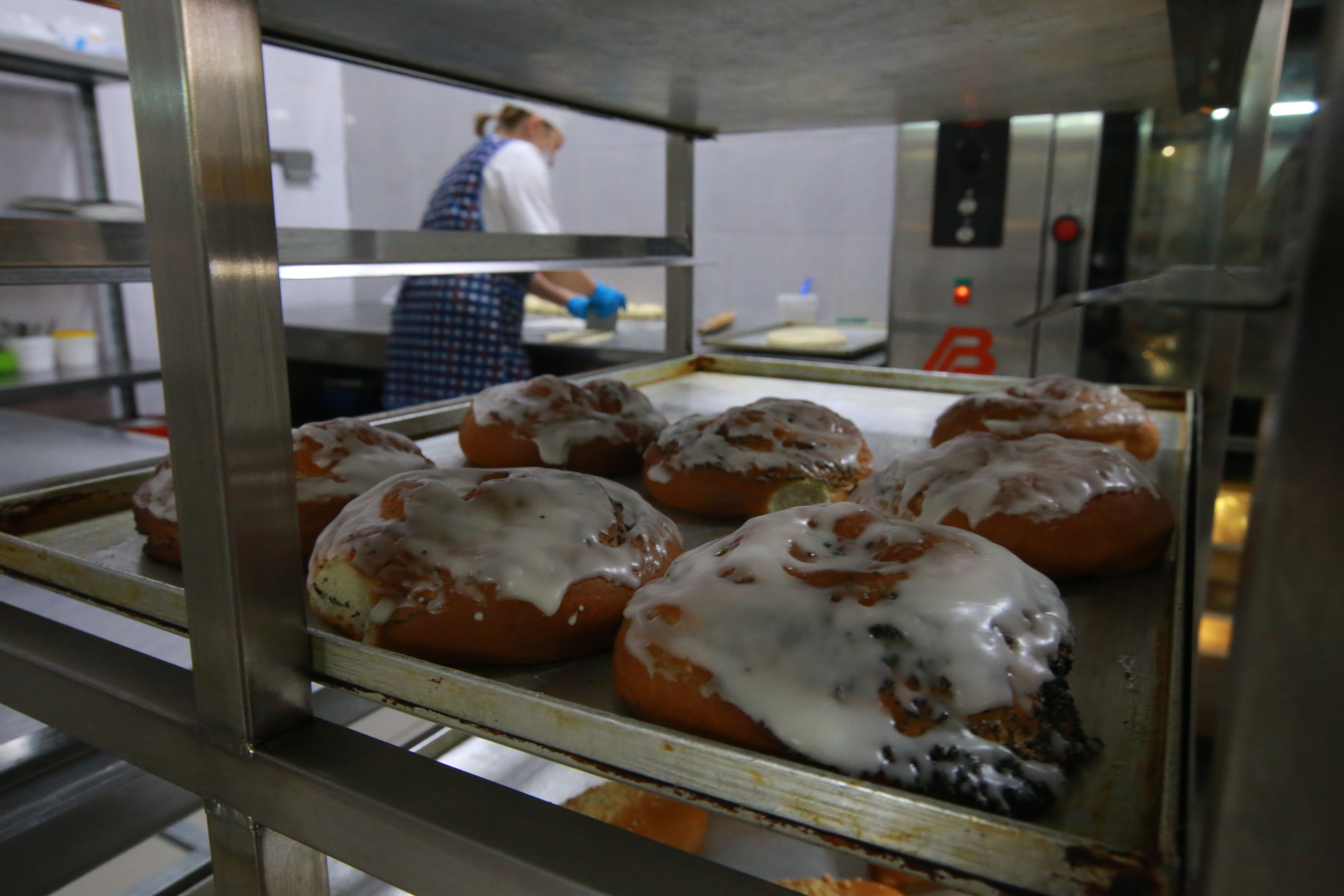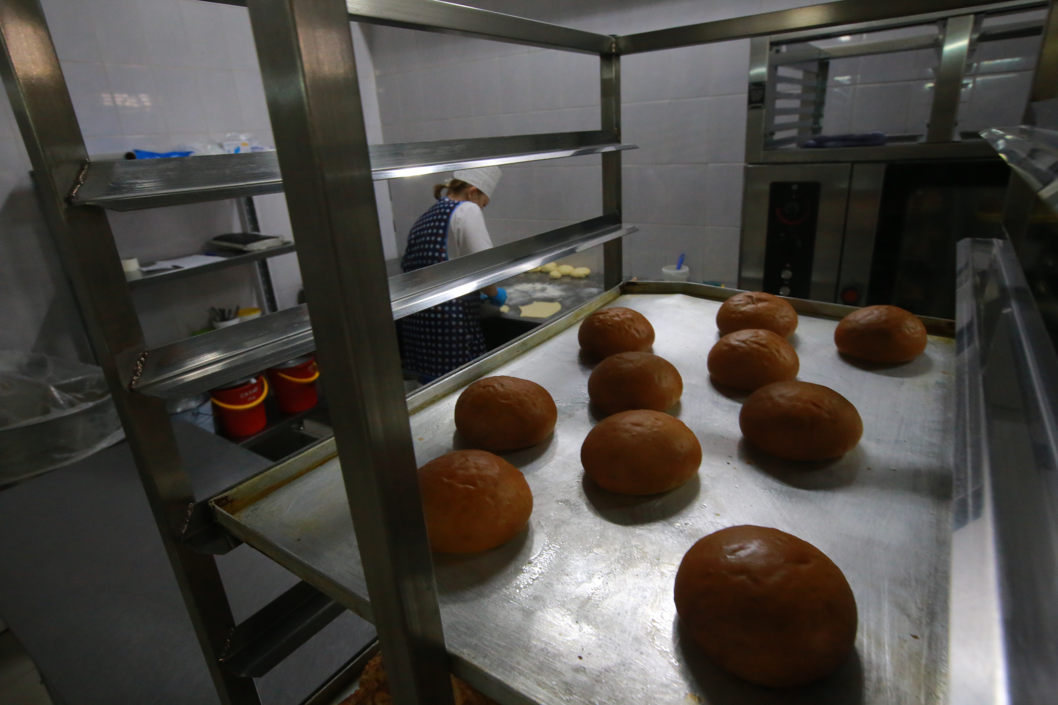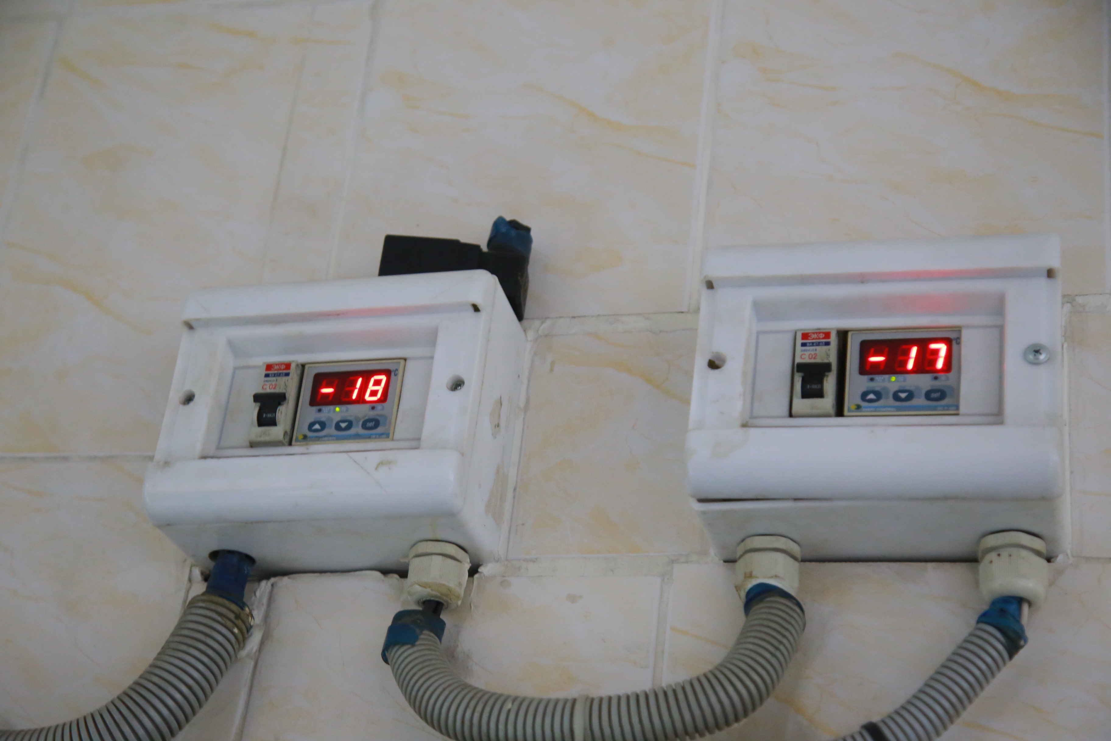 Кроме завтраков, комплексных обедов и выпечки, повара комбината готовят и полуфабрикаты с применением шоковой заморозки. Для этого в цеху стоит морозильный шкаф, где температура достигает −70 градусов.
