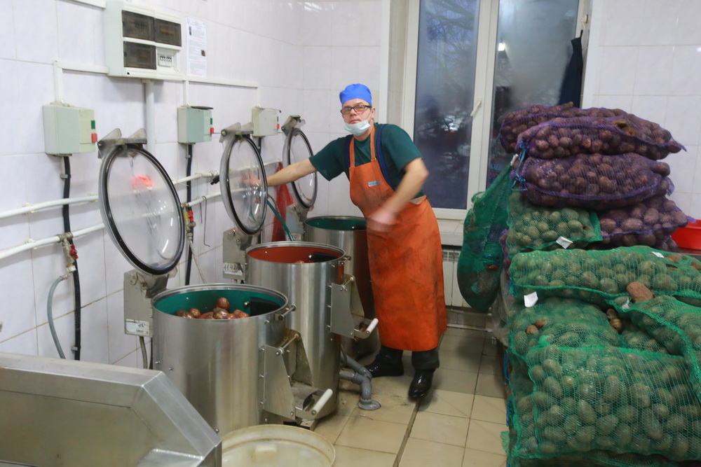 Не у всех школ в городе есть техническая возможность поддерживать полный цикл производства, на месте готовить обеды и кормить детей. Из процесса, как правило, выпадают старые и маленькие школы. Там работают буфеты-раздаточные. Их у комбината девять.