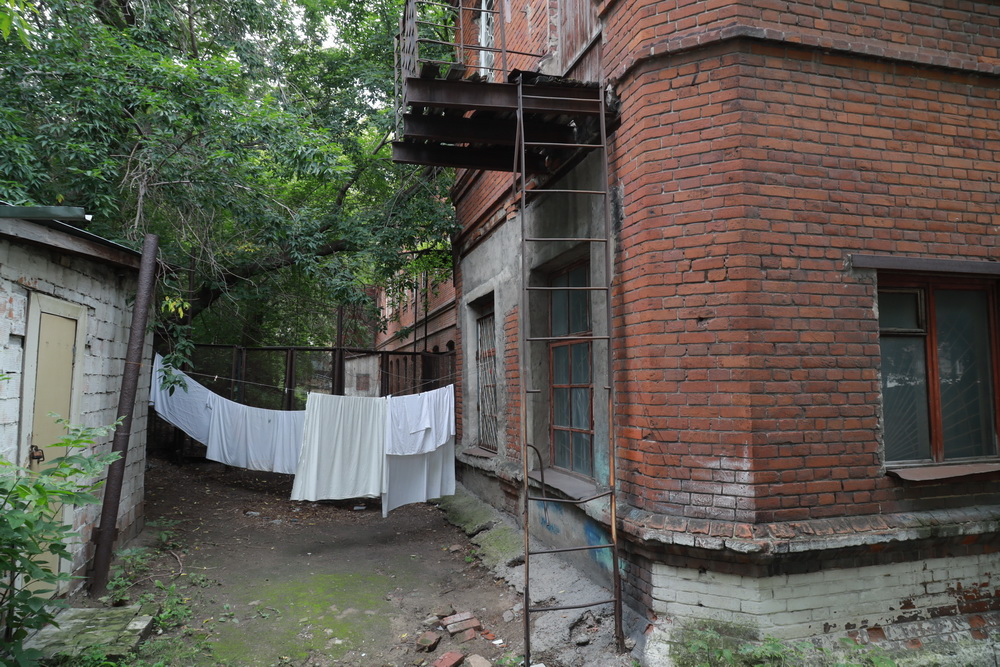 «Здания имеют планировки коридорного типа. В помещениях можно встретить несущие колонны из лиственницы. На таких держится кровля. Сохранились старая метлахская плитка, сводчатые потолки, арочные проёмы окон. Хотя много окон, к сожалению, заложено кирпичом, арки утрачены», — рассказывает эксперт.