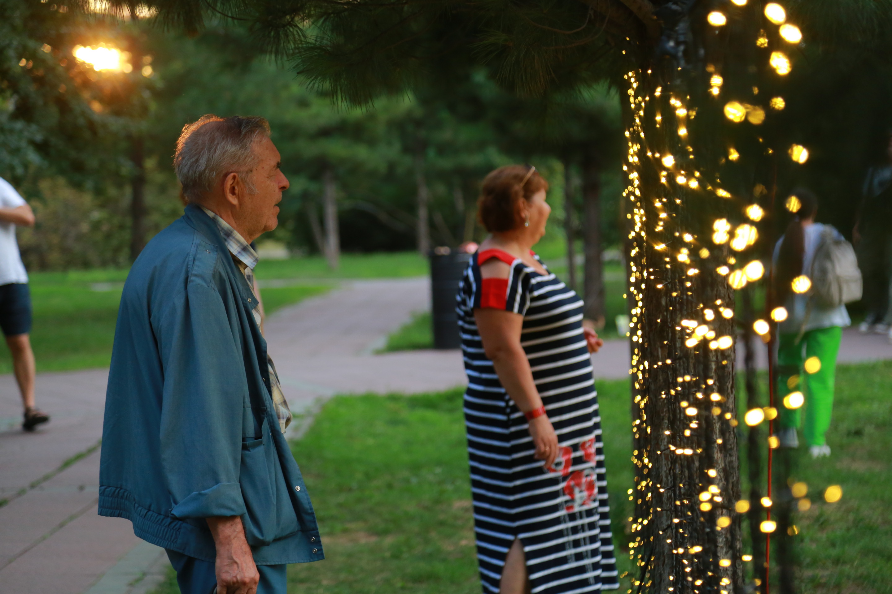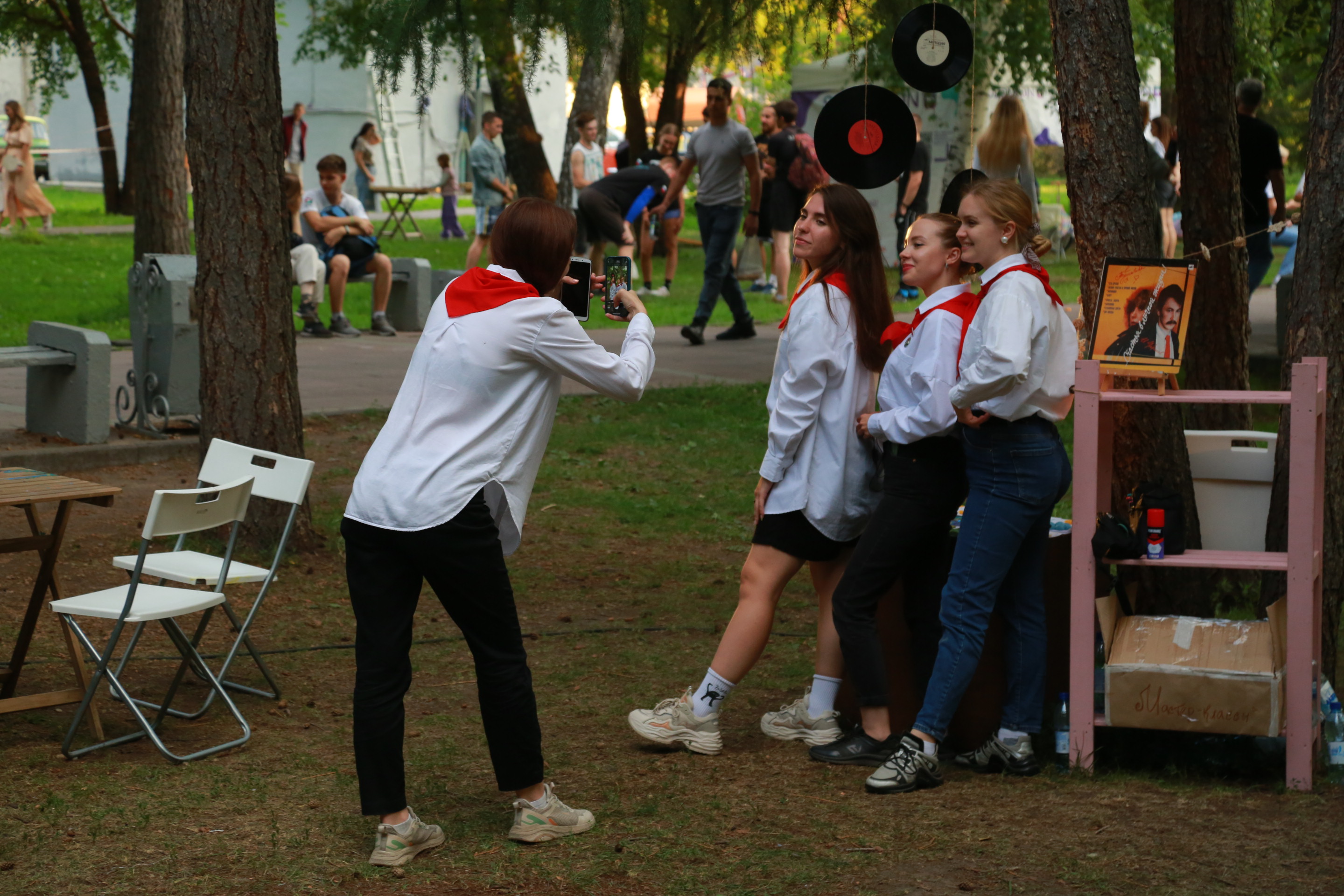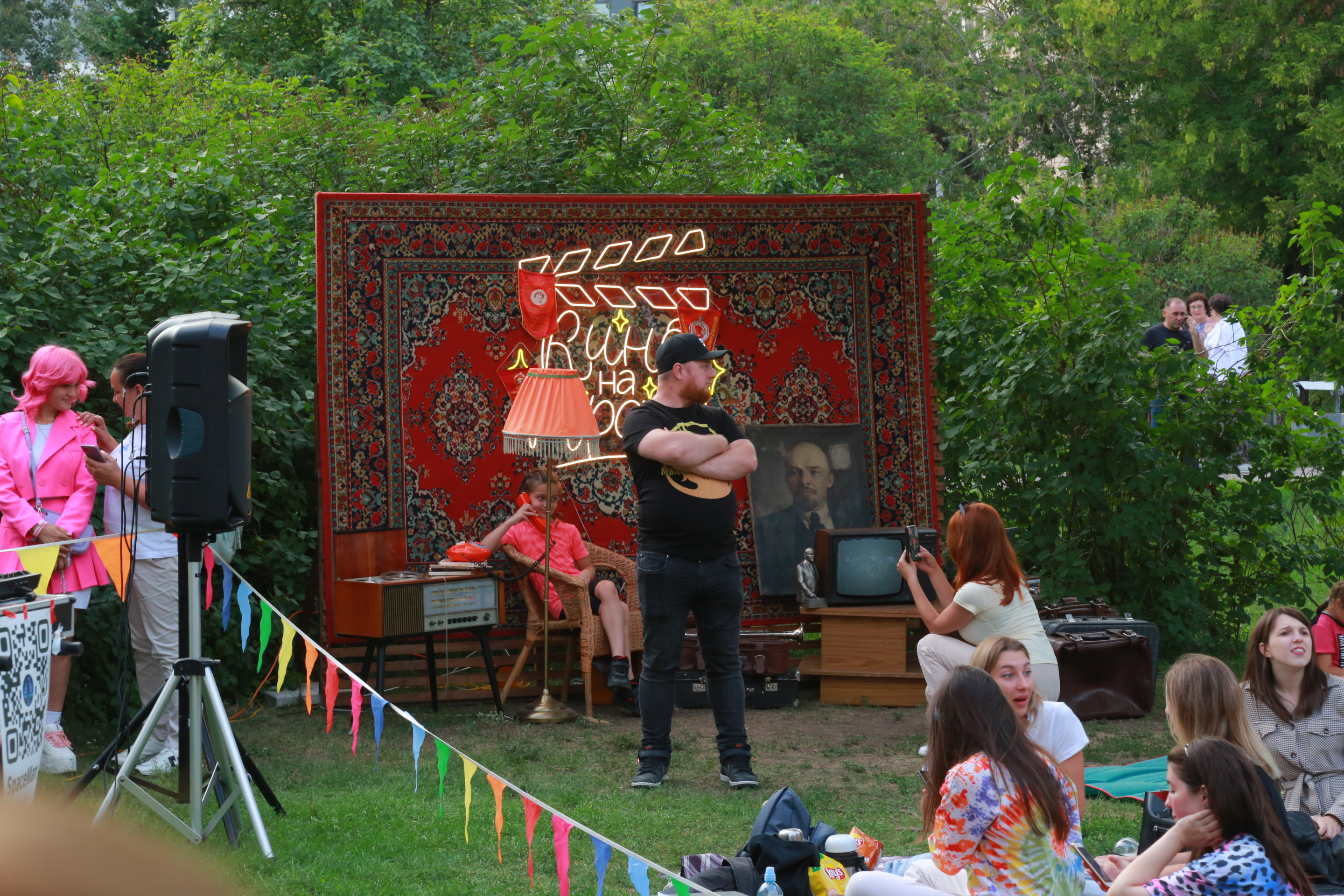 Летний фестиваль «Кино на траве», проходящий в Нарымском сквере, собирает всё больше поклонников. Как правило, зрители заранее онлайн выбирают фильм, который вместе посмотрят в пятницу вечером под открытым небом. Но в этот раз организаторы предлагают провести тайный показ. Если вы ещё не видели кино на траве — вдохновляйтесь нашими фотографиями и готовьте плед для следующего сеанса.