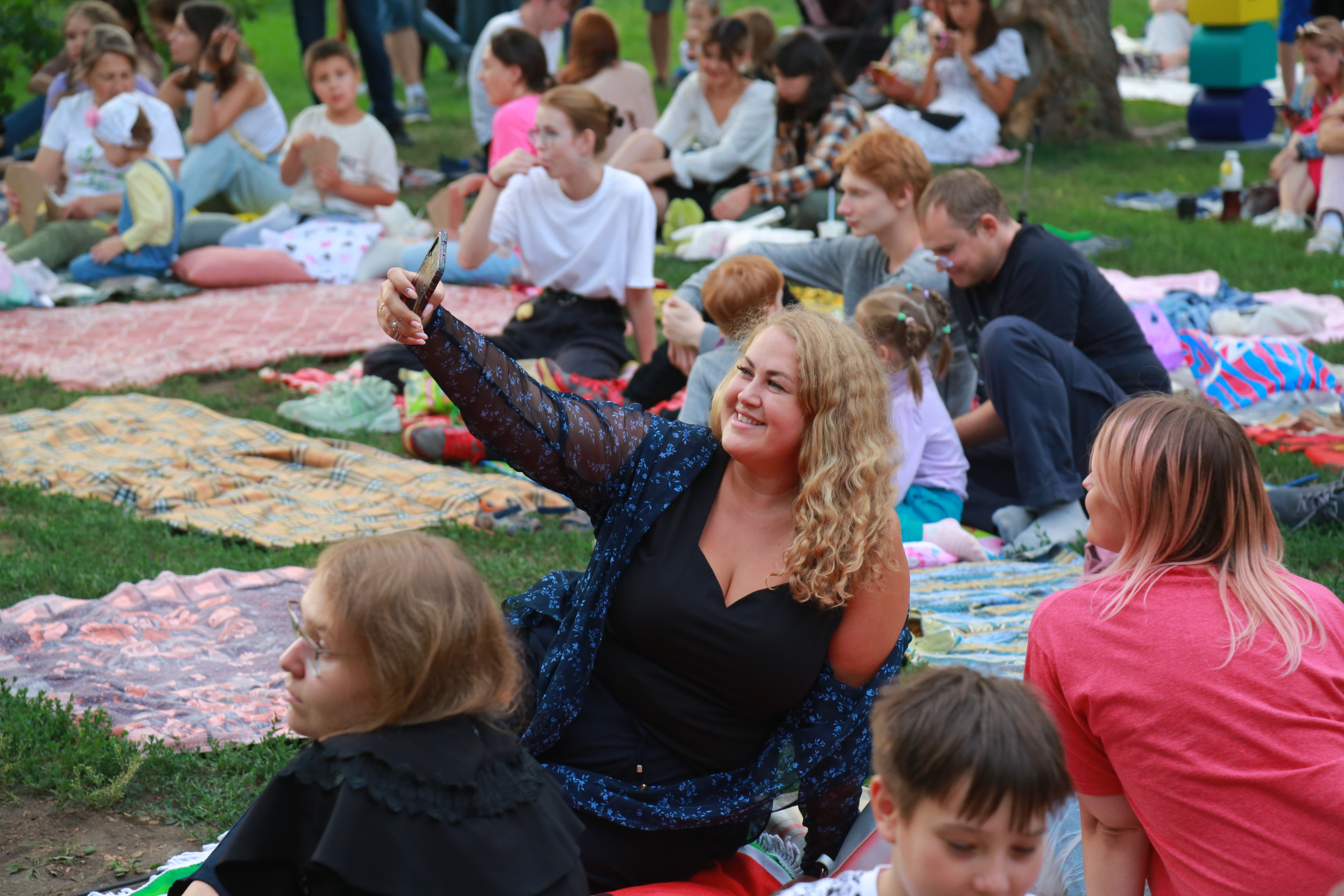 Показы идут всё лето — до сентября. Помимо них в кинотеатре под открытым небом каждый раз организуют активные зоны с пикником, играми, мастер-классами и выступлениями музыкантов. А ещё перед фильмом можно выиграть приятные подарки.