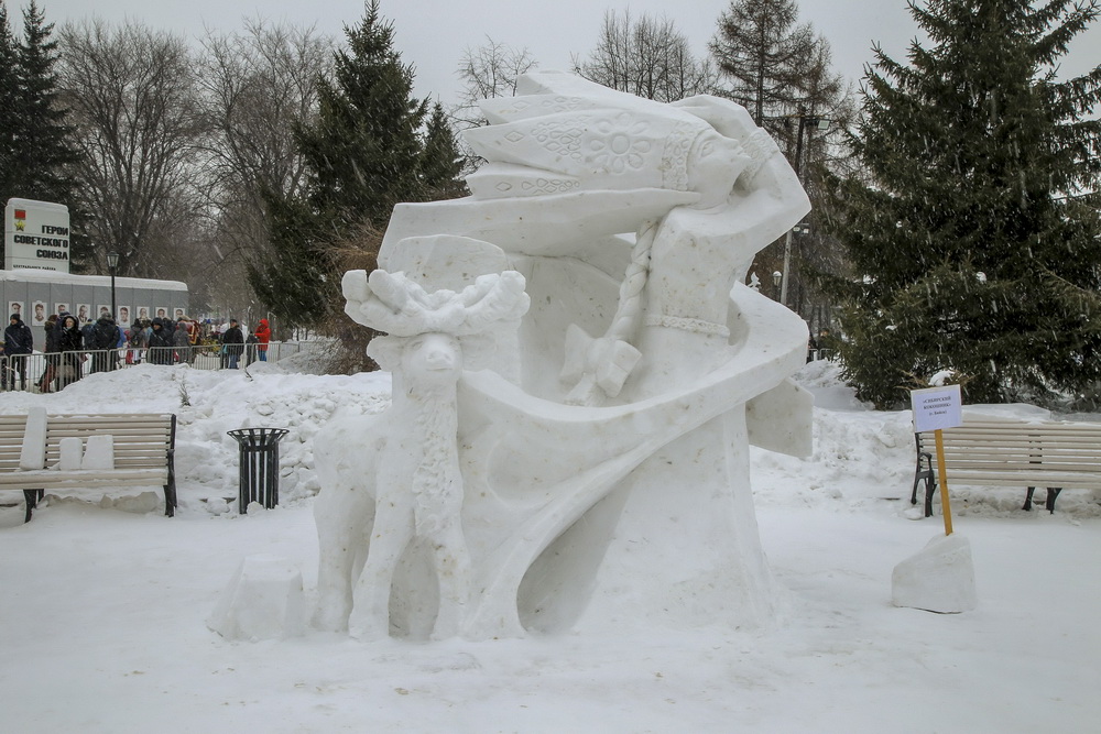 Фестиваль снежной скульптуры: Первомайский сквер заколдовали духи Сибири