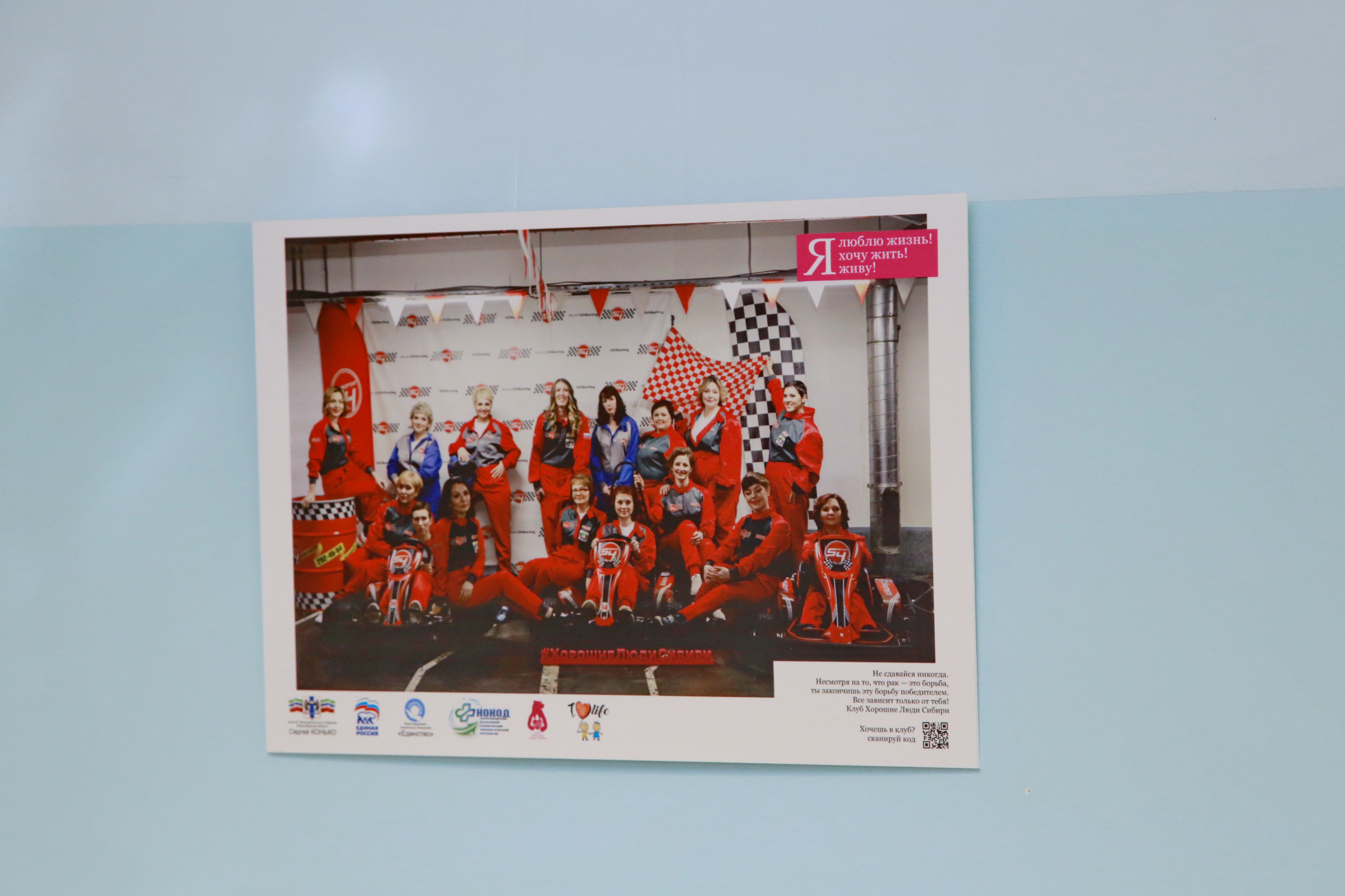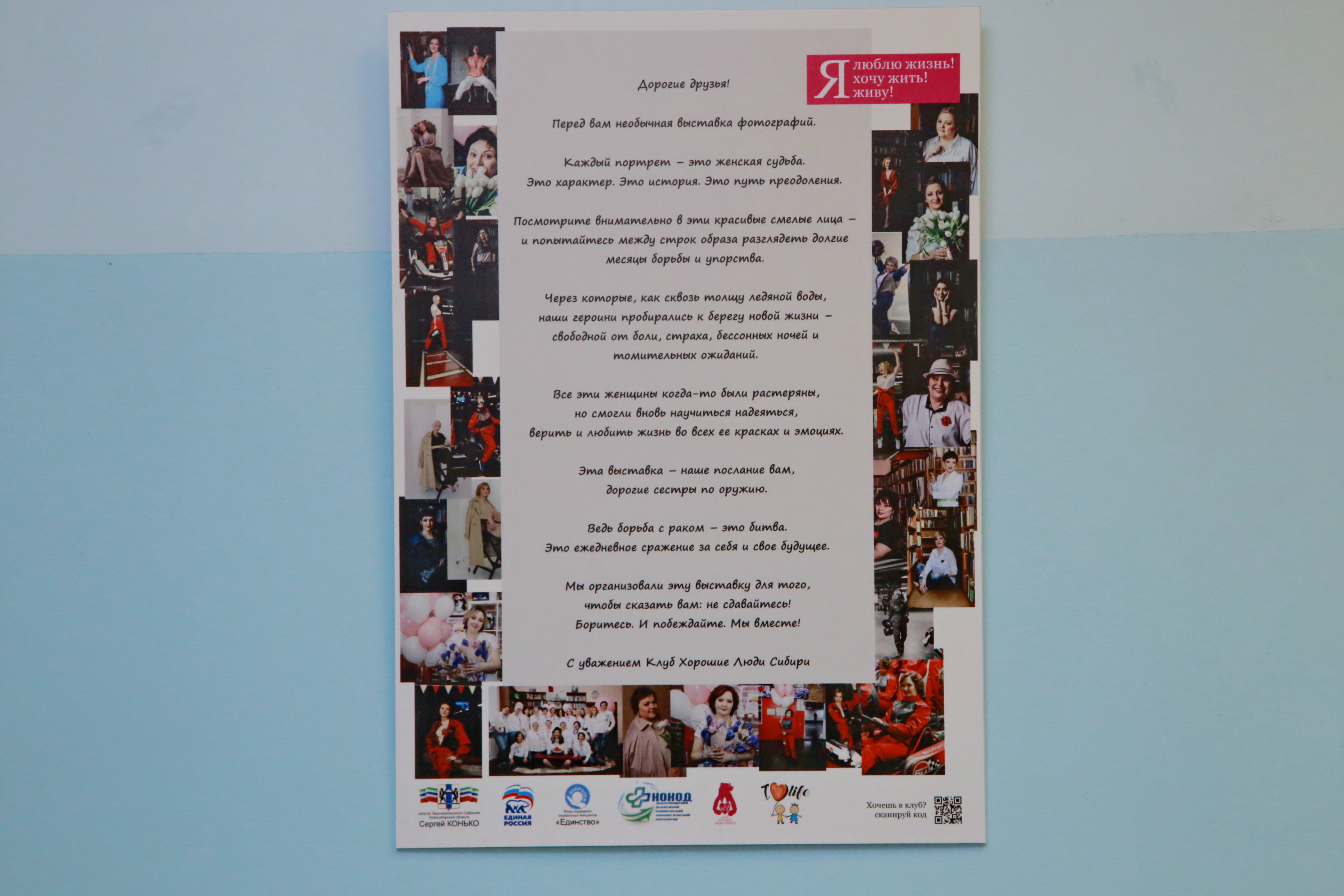 Фотовыставку организовали участницы клуба «Хорошие люди Сибири». Это сообщество поддерживает пациентов с онкозаболеваниями. Та же цель у экспозиции — её установили в холле онкодиспансера. Участницы уверены: позитивные истории помогут другим не сдаваться. А ещё фотовыставка — благодарность врачам.