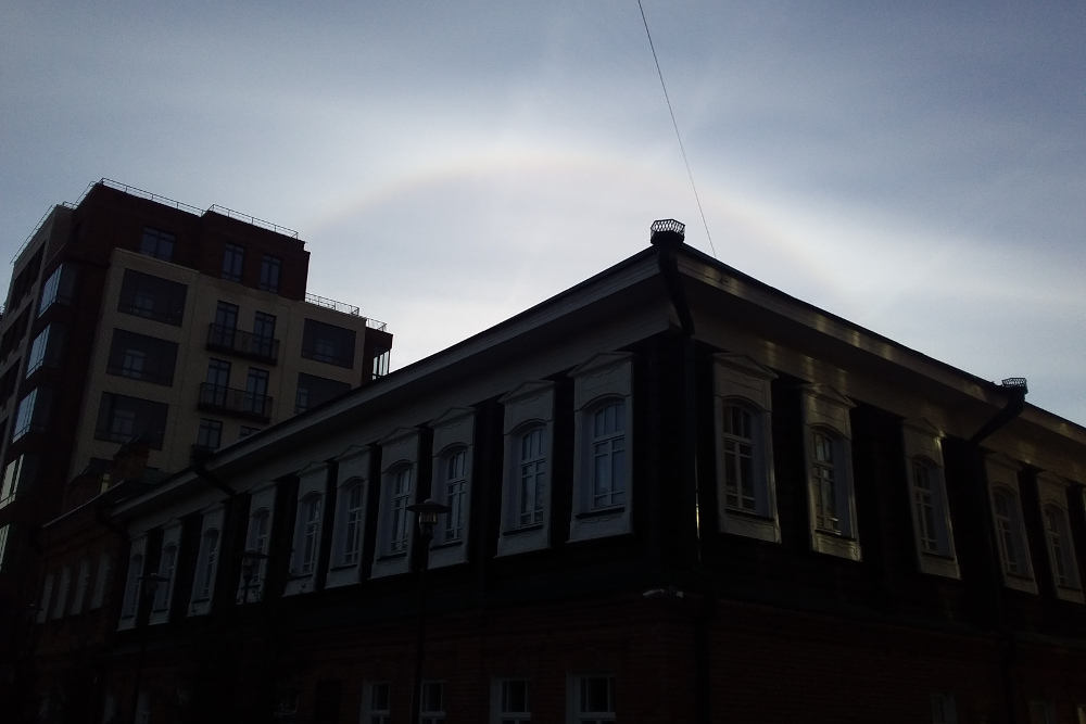 Световое кольцо появилось в небе напротив прихода Покрова Пресвятой Богородицы на улице Октябрьской с 9:00 до 10:30, пока шла утренняя служба, уверяют очевидцы. Нимб над храмом можно было разглядеть со стороны улиц Революции и Советской. Снимки сделал портал гало-солнца.рф.