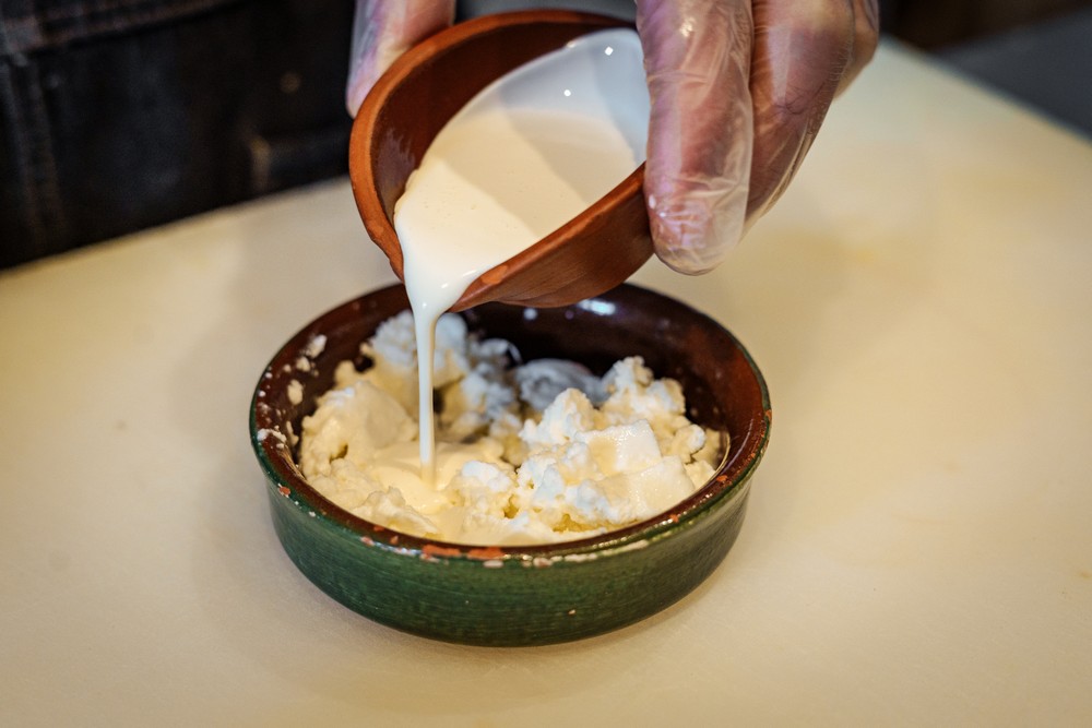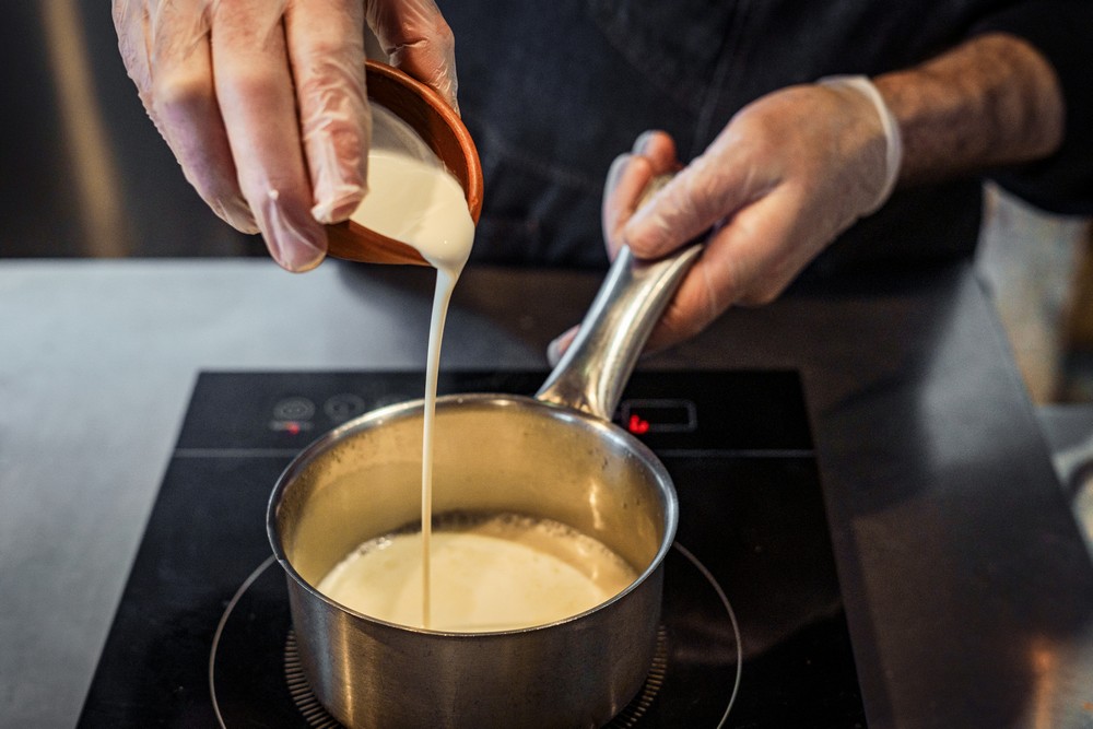 — Добавьте столовую ложку рассола (от моцареллы) и сливки.