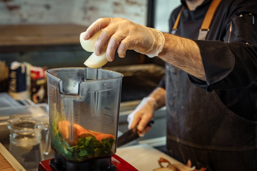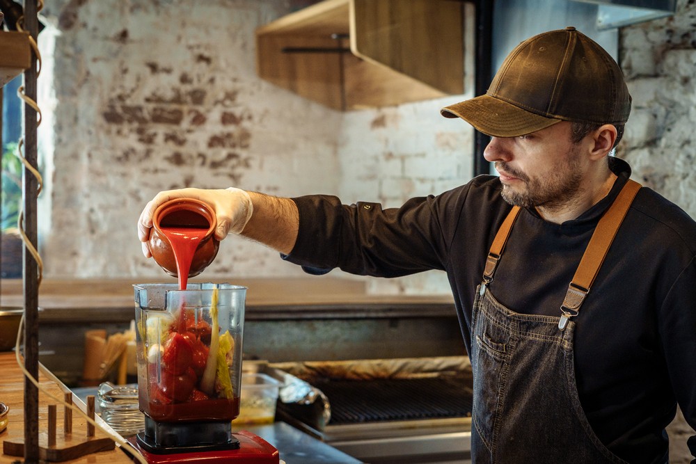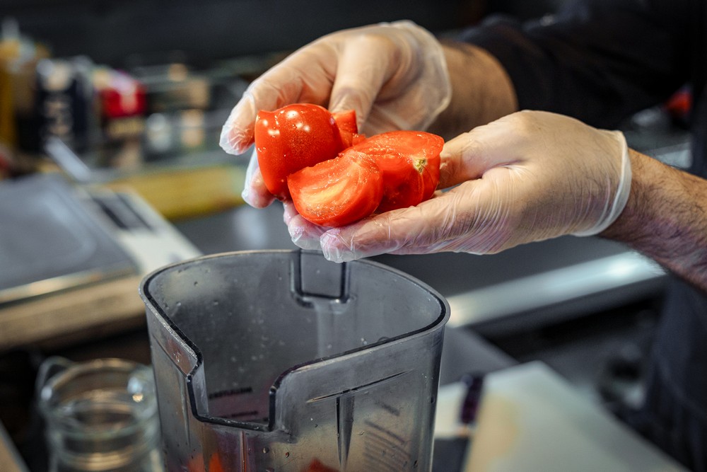 — Соедините все ингредиенты для гаспачо в блендере и пробейте до однородной консистенции.