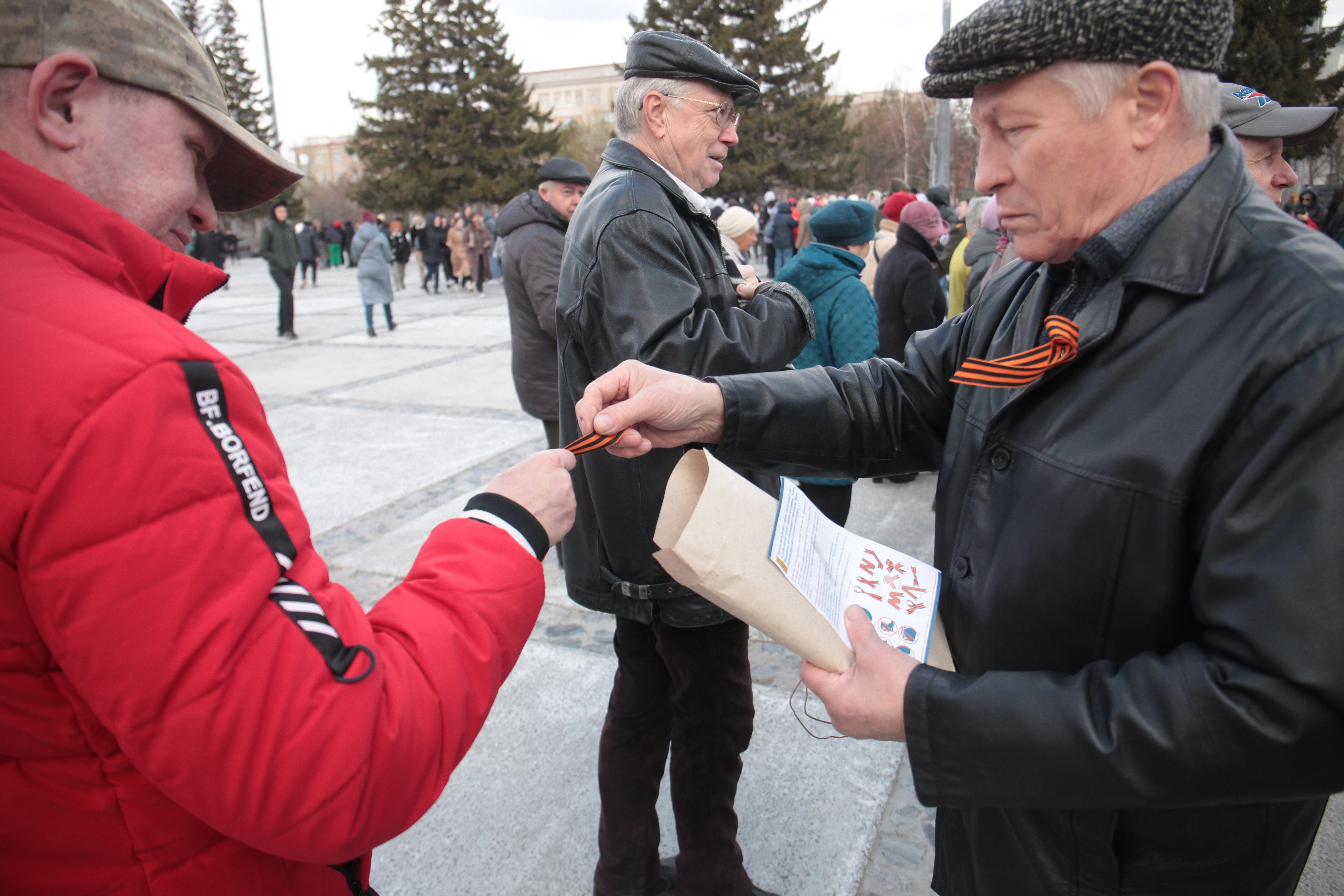 В Новосибирске акция «Георгиевская ленточка» стартовала на Монументе Славы. Там провели торжественный митинг, а после передали патриотическим объединениям наборы ленточек.