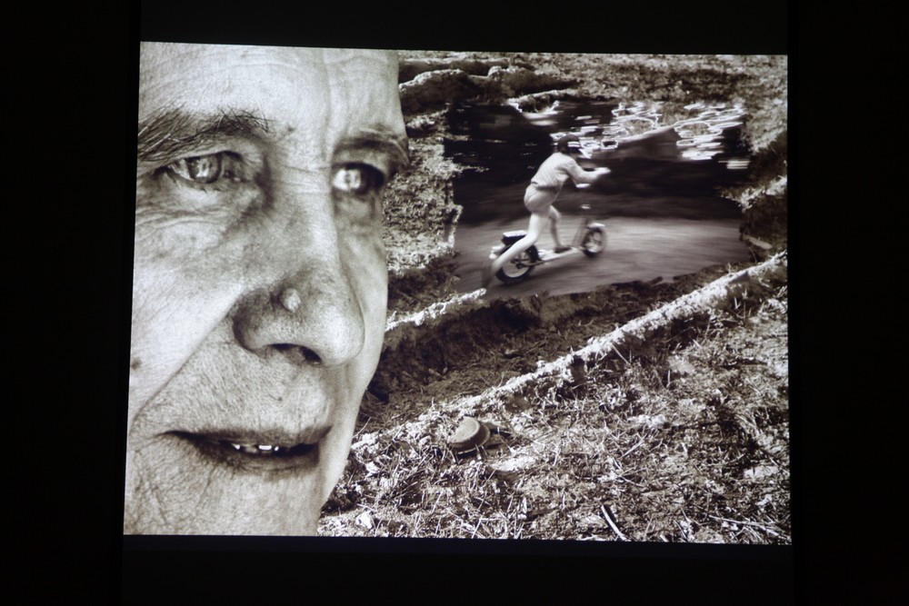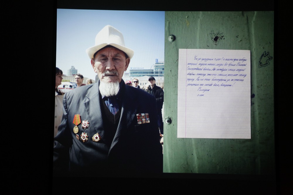 «Там музыка, созданная специально для этого проекта, много хроники. Правда, она специально смонтирована так, чтобы создать гипнотический эффект, чтобы зритель как бы вошёл в экран, в эту тему, был в ней», — поясняет сокуратор проекта «Память как инструмент перемен» Вячеслав Мизин.