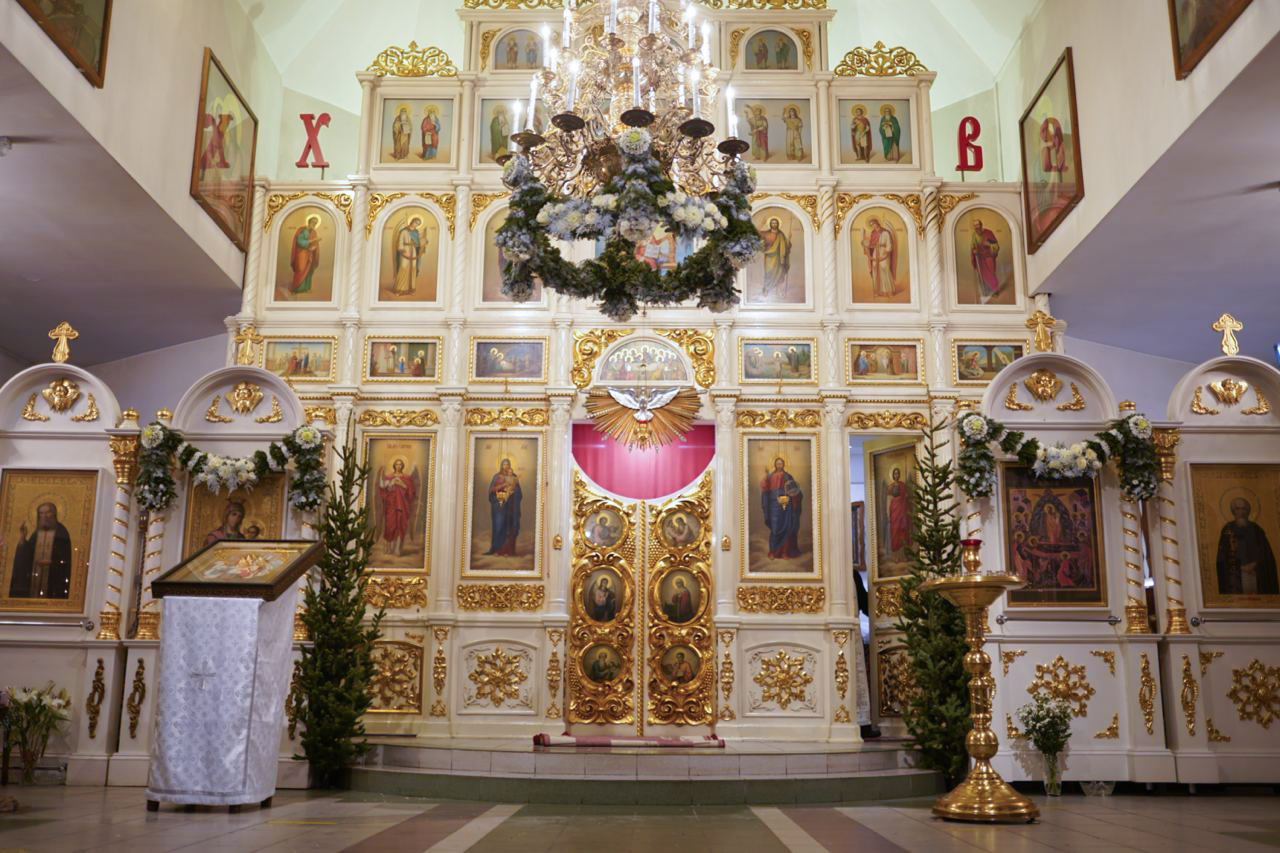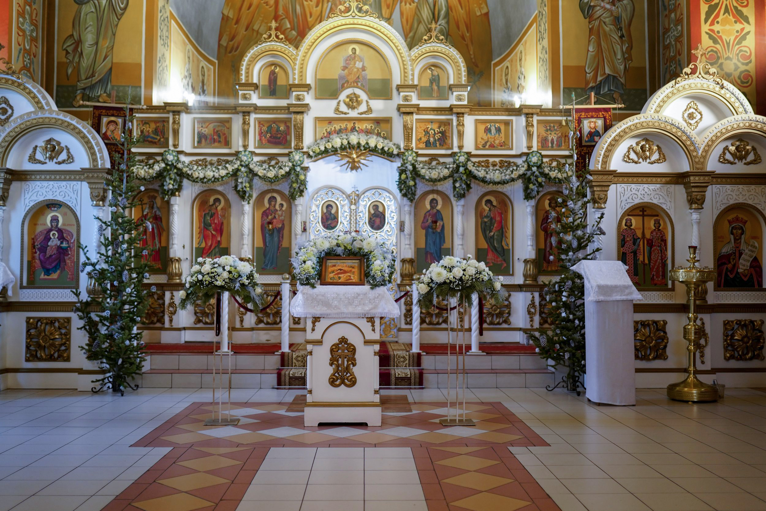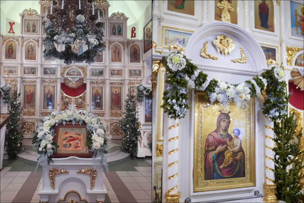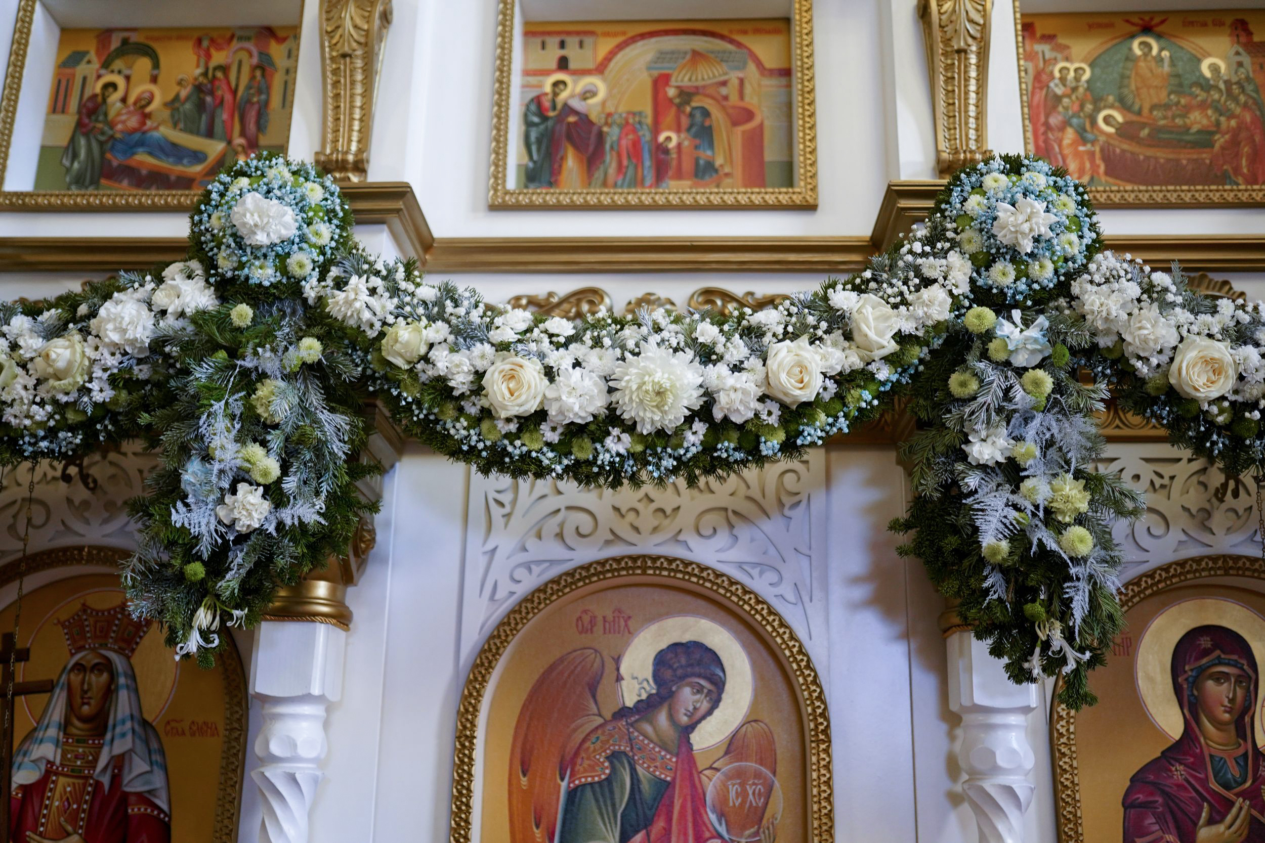 Нежными гирляндами из цветов украсили новосибирские храмы к Рождеству