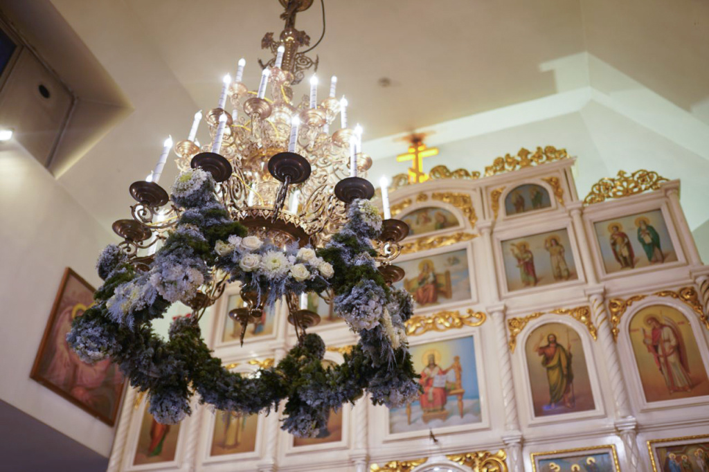 Десятки роз, гвоздик, хризантем и других цветов и четыре дня кропотливой работы ушли у мастериц на то, чтобы создать атмосферу праздника в храмах Успения Пресвятой Богородицы у Берёзовой рощи и святого равноапостольного царя Константина в посёлке Тулинском. В первом нежными гирляндами украсили два киота и паникадило — массивную люстру, а во втором — иконостас.